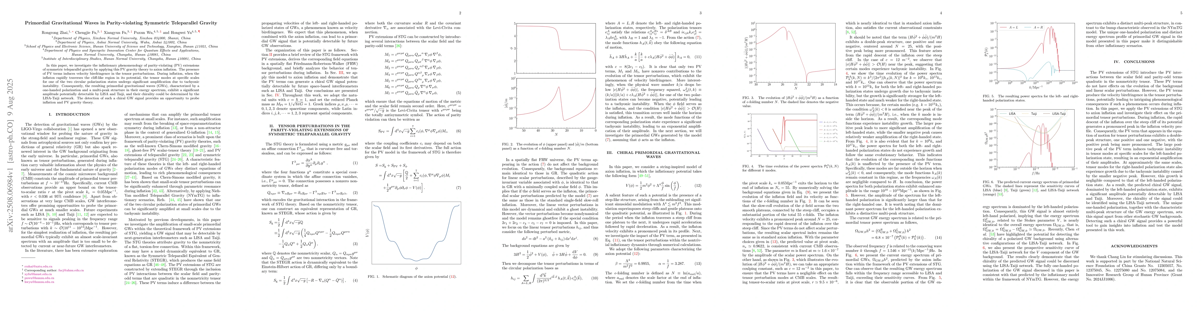 The paper presents a detailed analysis of tensor perturbations in PV extensions of STG, demonstrating how tachyonic instability can lead to observable chiral GW signals during axion inflation.
