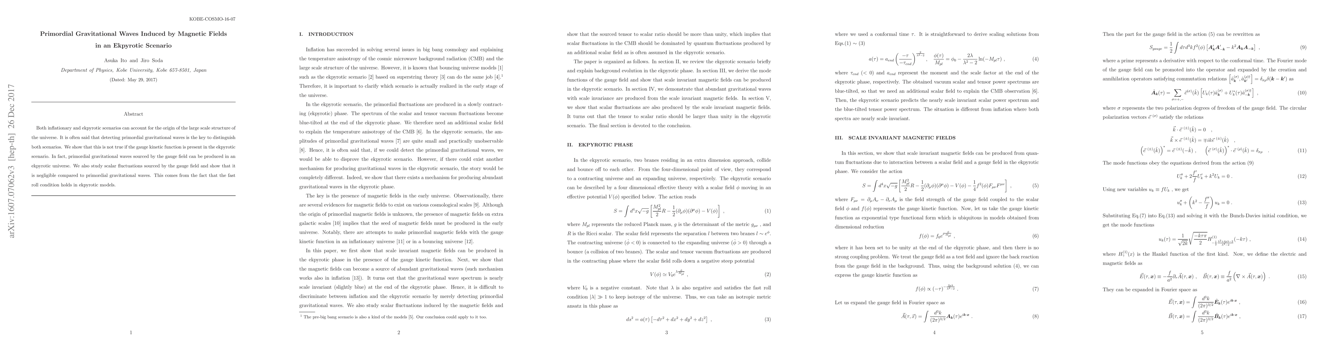 This paper demonstrates that primordial gravitational waves can be generated in an ekpyrotic universe through the presence of a gauge kinetic function, challenging the notion that detecting such waves is exclusive to inflationary scenarios. It also finds that scalar fluctuations from the gauge field are negligible compared to gravitational waves due to the fast roll condition in ekpyrotic models.
