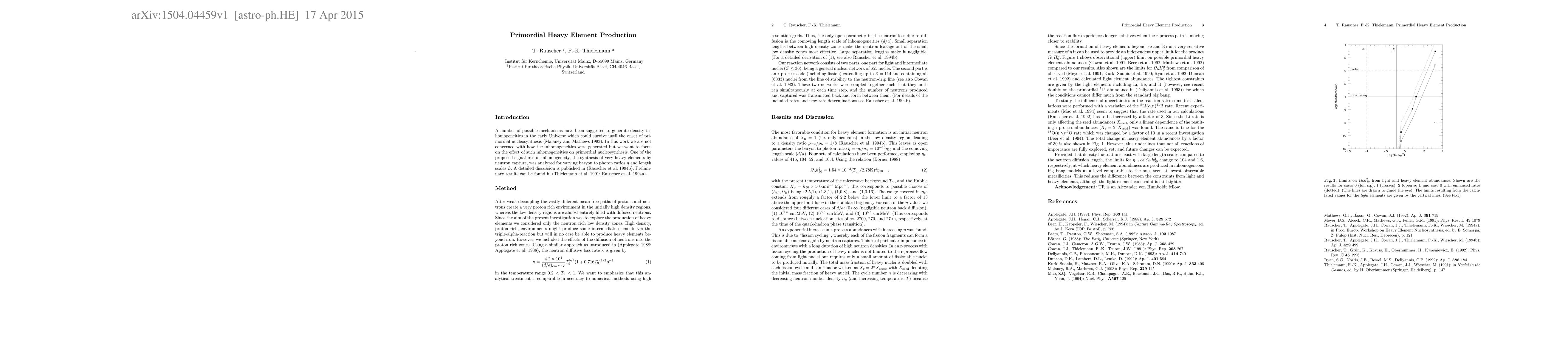 A number of possible mechanisms have been suggested to generate density inhomogeneities in the early Universe which could survive until the onset of primordial nucleosynthesis and generate neutron-rich regions. In this work we are not concerned with how the inhomogeneities were generated but we want to focus on the effect of such inhomogeneities on primordial nucleosynthesis. One of the proposed signatures of inhomogeneity, the synthesis of very heavy elements by neutron capture in a primordial r-process, was analyzed for varying baryon to photon ratios $\eta$ and fluctuation length scales $L$.