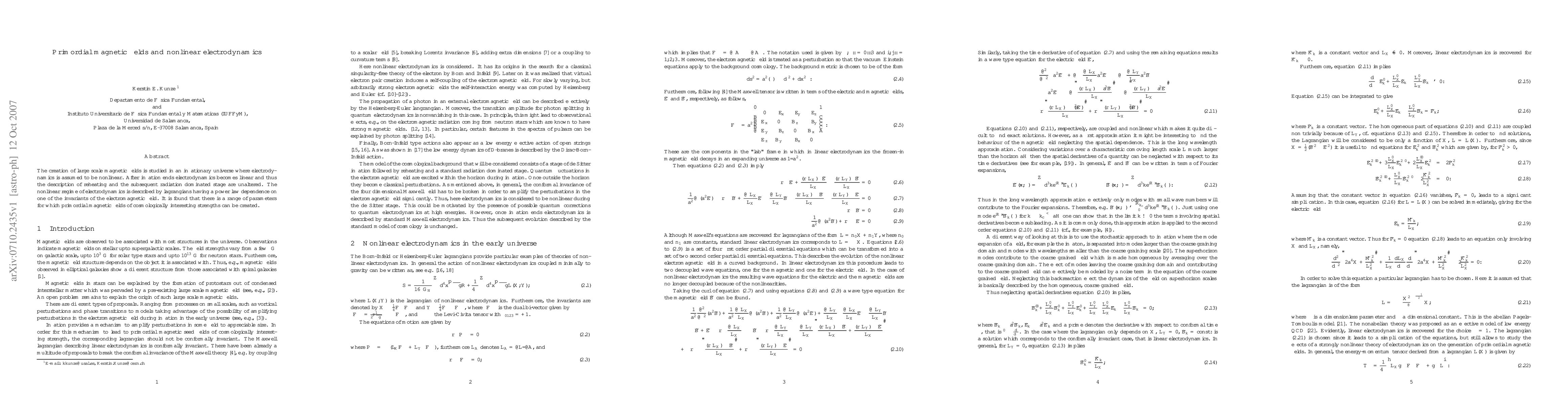 The creation of large scale magnetic fields is studied in an inflationary universe where electrodynamics is assumed to be nonlinear. After inflation ends electrodynamics becomes linear and thus the description of reheating and the subsequent radiation dominated stage are unaltered. The nonlinear regime of electrodynamics is described by lagrangians having a power law dependence on one of the invariants of the electromagnetic field. It is found that there is a range of parameters for which primordial magnetic fields of cosmologically interesting strengths can be created.