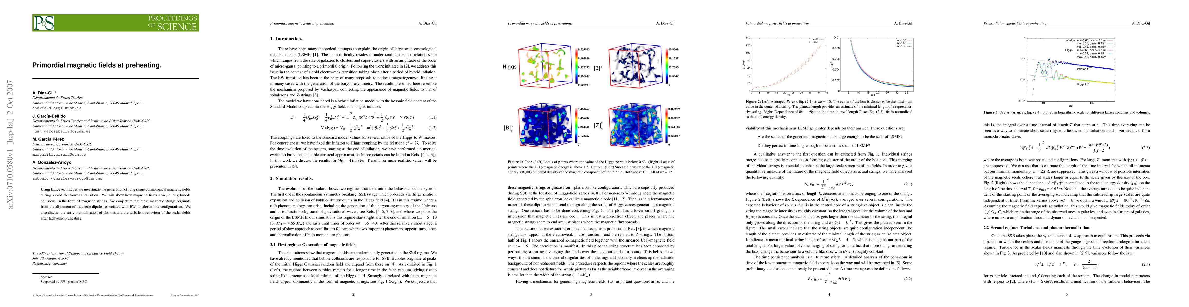 Using lattice techniques we investigate the generation of long range cosmological magnetic fields during a cold electroweak transition. We will show how magnetic fields arise, during bubble collisions, in the form of magnetic strings. We conjecture that these magnetic strings originate from the alignment of magnetic dipoles associated with EW sphaleron-like configurations. We also discuss the early thermalisation of photons and the turbulent behaviour of the scalar fields after tachyonic preheating.