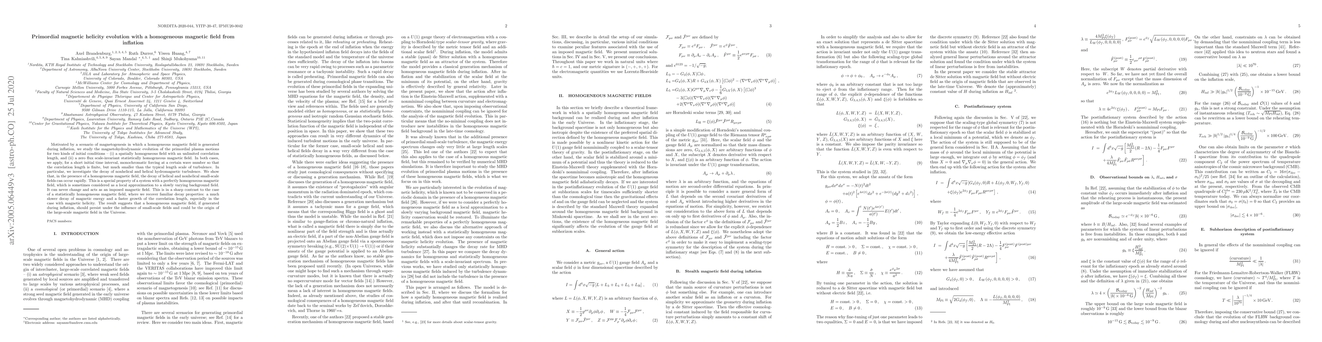 This paper investigates the magnetohydrodynamic evolution of primordial plasma with a homogeneous magnetic field generated during inflation, contrasting it with a statistically homogeneous magnetic field. It finds that a homogeneous magnetic field can rapidly decay small-scale fields, suggesting it could persist and contribute to the large-scale magnetic fields observed in the Universe.