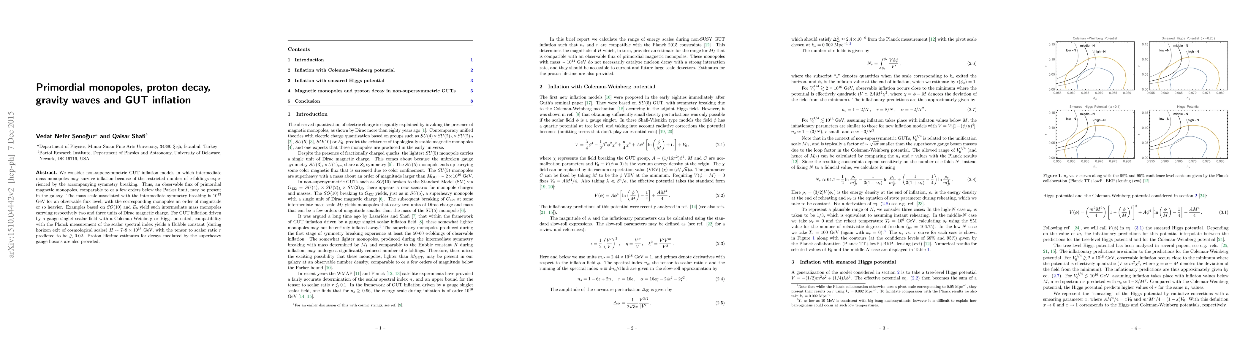 This paper explores non-supersymmetric GUT inflation models where intermediate mass monopoles can survive due to limited e-foldings, potentially resulting in a detectable primordial monopole flux. It predicts a mass scale of $10^{13}$ GeV for observable monopoles and links these models to tensor-to-scalar ratios and proton decay lifetimes.