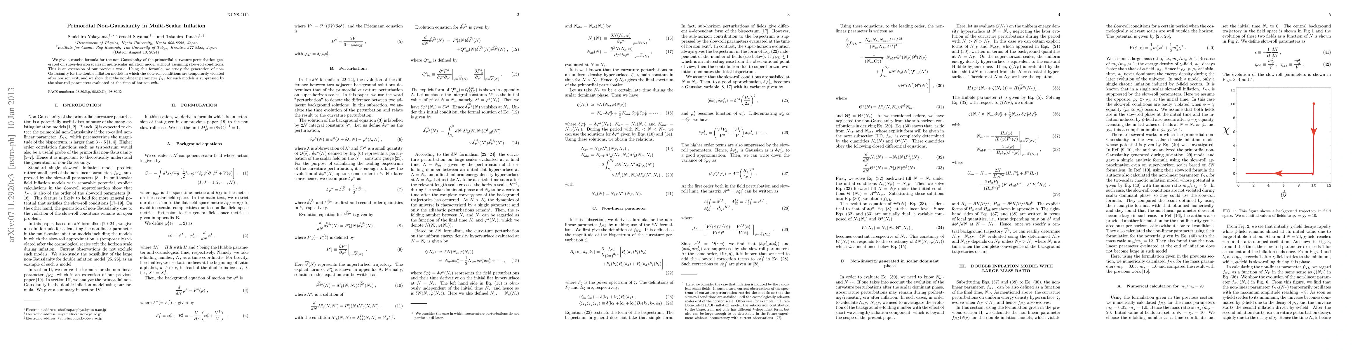 This paper presents a formula for primordial non-Gaussianity in multi-scalar inflation models without relying on slow-roll conditions. It applies this formula to double inflation models, demonstrating that the non-Gaussianity parameter $f_{NL}$ is reduced by slow-roll parameters at horizon exit.
