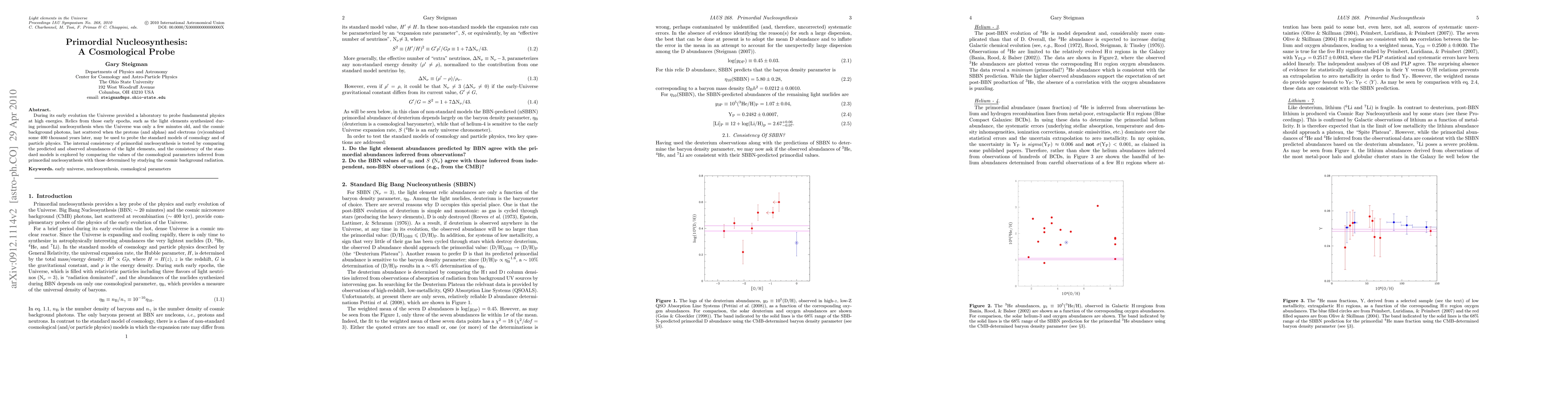 This paper investigates primordial nucleosynthesis as a means to probe the early universe's conditions and test standard cosmological and particle physics models. It compares predicted and observed light element abundances to assess the consistency of these models.