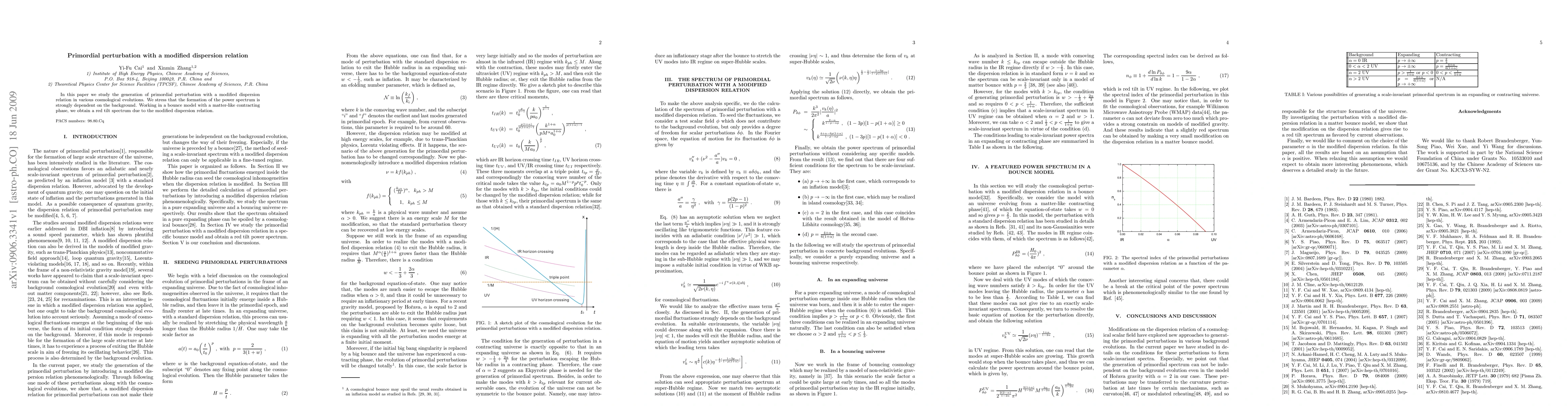 This paper investigates the generation of primordial perturbations under a modified dispersion relation in cosmological evolutions, finding that the resulting power spectrum is significantly influenced by the background model. In a bounce model with a contracting phase, the modified dispersion relation leads to a red tilt spectrum.