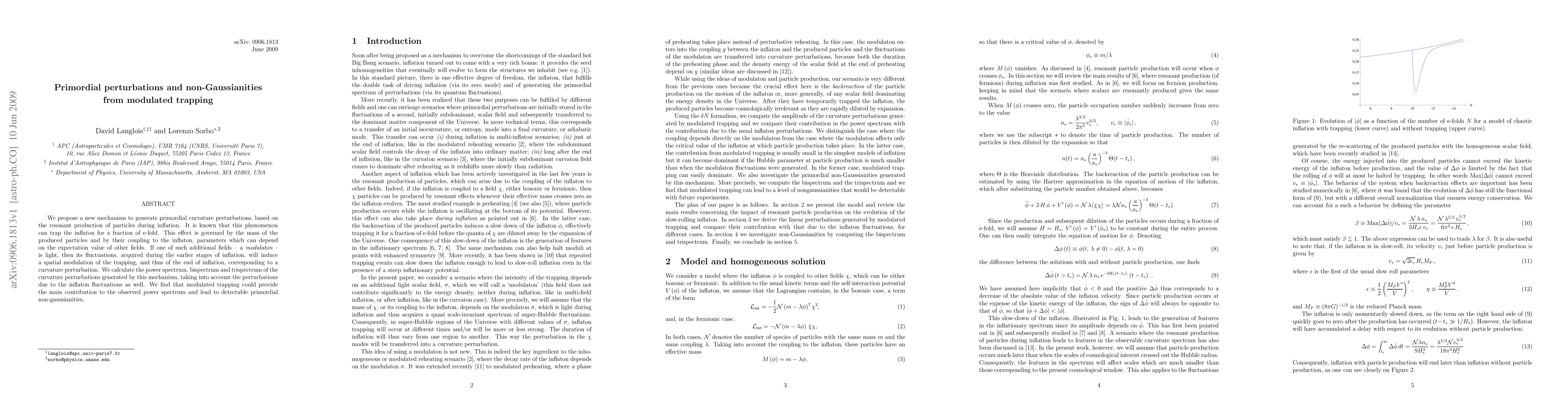 This paper proposes a new mechanism for generating primordial curvature perturbations through the resonant production of particles during inflation, where fluctuations in a light 'modulaton' field modulate the trapping of the inflaton. The study calculates the power spectrum, bispectrum, and trispectrum of the resulting perturbations, suggesting that this mechanism could significantly contribute to the observed power spectrum and produce detectable primordial non-Gaussianities.