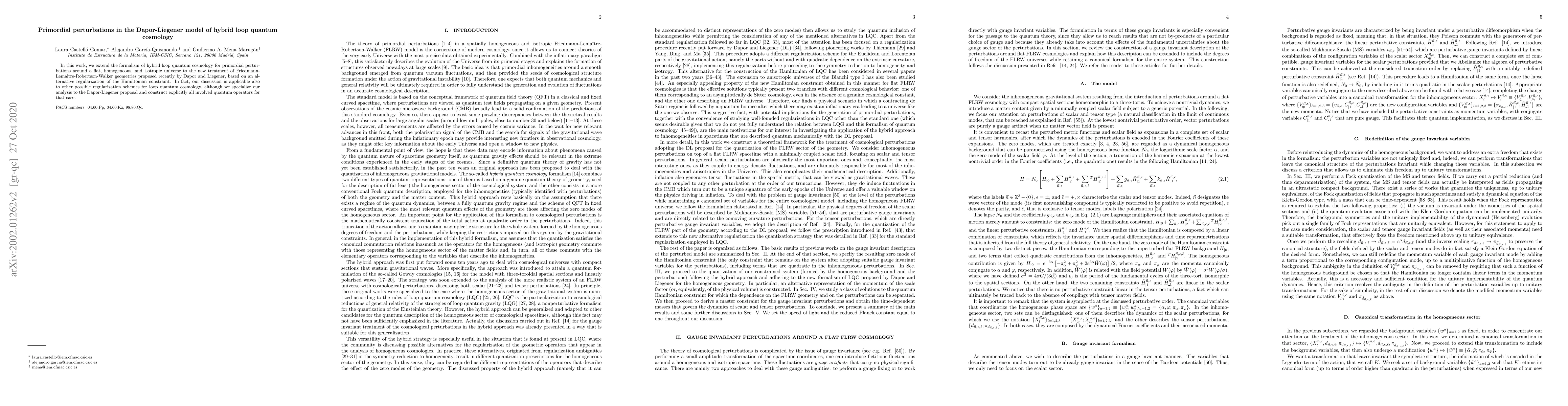 This paper extends hybrid loop quantum cosmology to analyze primordial perturbations in the Dapor-Liegener model, which offers a new regularization approach for the Hamiltonian constraint. The authors construct quantum operators specific to this model, applicable to other regularization schemes in loop quantum cosmology.