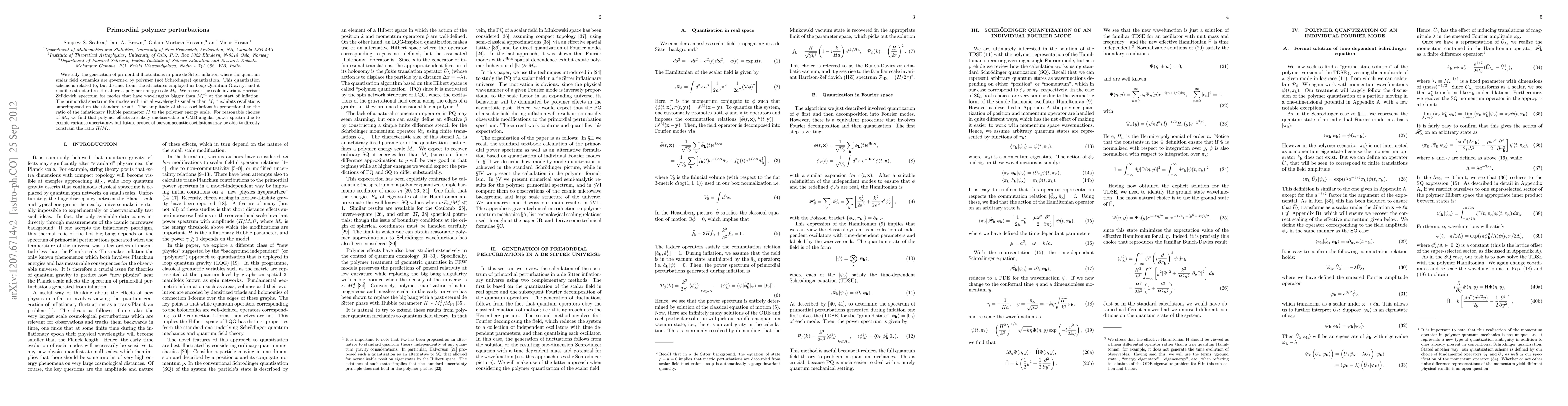 We study the generation of primordial fluctuations in pure de Sitter inflation where the quantum scalar field dynamics are governed by polymer (not Schrodinger) quantization. This quantization scheme is related to, but distinct from, the structures employed in Loop Quantum Gravity; and it modifies standard results above a polymer energy scale $M_{\star}$. We recover the scale invariant Harrison Zel'dovich spectrum for modes that have wavelengths bigger than $M_{\star}^{-1}$ at the start of inflation. The primordial spectrum for modes with initial wavelengths smaller than $M_{\star}^{-1}$ exhibits oscillations superimposed on the standard result. The amplitude of these oscillations is proportional to the ratio of the inflationary Hubble parameter $H$ to the polymer energy scale. For reasonable choices of $M_{\star}$, we find that polymer effects are likely unobservable in CMB angular power spectra due to cosmic variance uncertainty, but future probes of baryon acoustic oscillations may be able to directly constrain the ratio $H/M_{\star}$.