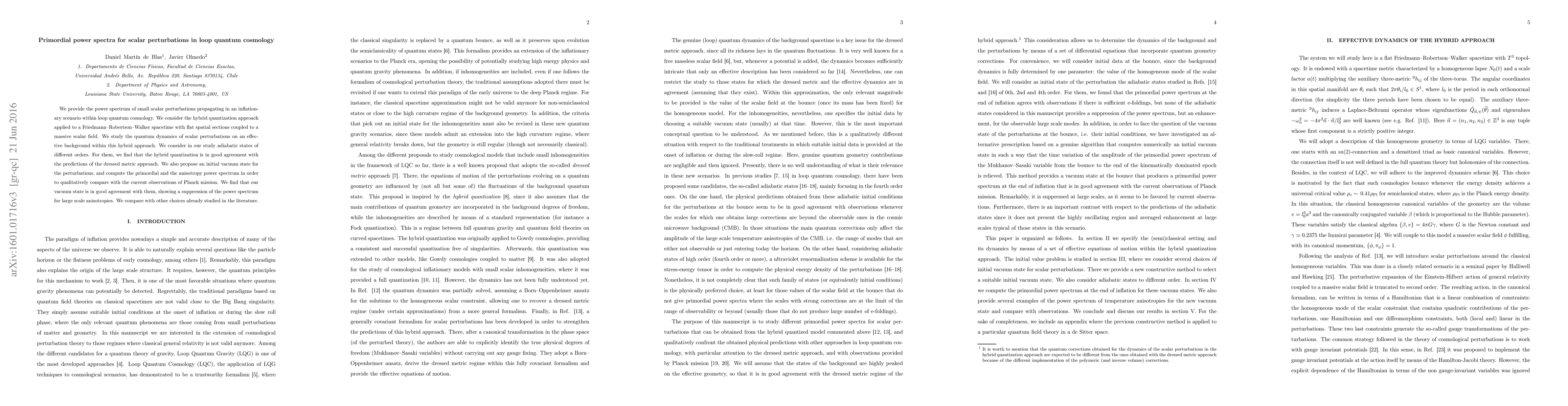 We provide the power spectrum of small scalar perturbations propagating in an inflationary scenario within loop quantum cosmology. We consider the hybrid quantization approach applied to a Friedmann--Robertson--Walker spacetime with flat spatial sections coupled to a massive scalar field. We study the quantum dynamics of scalar perturbations on an effective background within this hybrid approach. We consider in our study adiabatic states of different orders. For them, we find that the hybrid quantization is in good agreement with the predictions of the dressed metric approach. We also propose an initial vacuum state for the perturbations, and compute the primordial and the anisotropy power spectrum in order to qualitatively compare with the current observations of Planck mission. We find that our vacuum state is in good agreement with them, showing a suppression of the power spectrum for large scale anisotropies. We compare with other choices already studied in the literature.