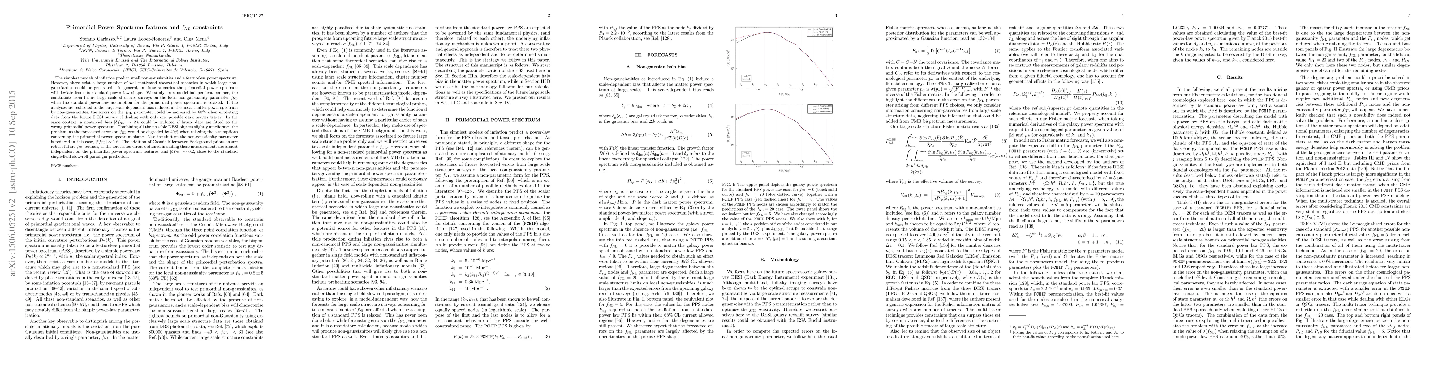 The simplest models of inflation predict small non-gaussianities and a featureless power spectrum. However, there exist a large number of well-motivated theoretical scenarios in which large non-gaussianties could be generated. In general, in these scenarios the primordial power spectrum will deviate from its standard power law shape. We study, in a model-independent manner, the constraints from future large scale structure surveys on the local non-gaussianity parameter $f_{\rm NL}$ when the standard power law assumption for the primordial power spectrum is relaxed. If the analyses are restricted to the large scale-dependent bias induced in the linear matter power spectrum by non-gaussianites, the errors on the $f_{\rm NL}$ parameter could be increased by $60\%$ when exploiting data from the future DESI survey, if dealing with only one possible dark matter tracer. In the same context, a nontrivial bias $|\delta f_{\rm NL}| \sim 2.5$ could be induced if future data are fitted to the wrong primordial power spectrum. Combining all the possible DESI objects slightly ameliorates the problem, as the forecasted errors on $f_{\rm NL}$ would be degraded by $40\%$ when relaxing the assumptions concerning the primordial power spectrum shape. Also the shift on the non-gaussianity parameter is reduced in this case, $|\delta f_{\rm NL}| \sim 1.6$. The addition of Cosmic Microwave Background priors ensure robust future $f_{\rm NL}$ bounds, as the forecasted errors obtained including these measurements are almost independent on the primordial power spectrum features, and $|\delta f_{\rm NL}| \sim 0.2$, close to the standard single-field slow-roll paradigm prediction.