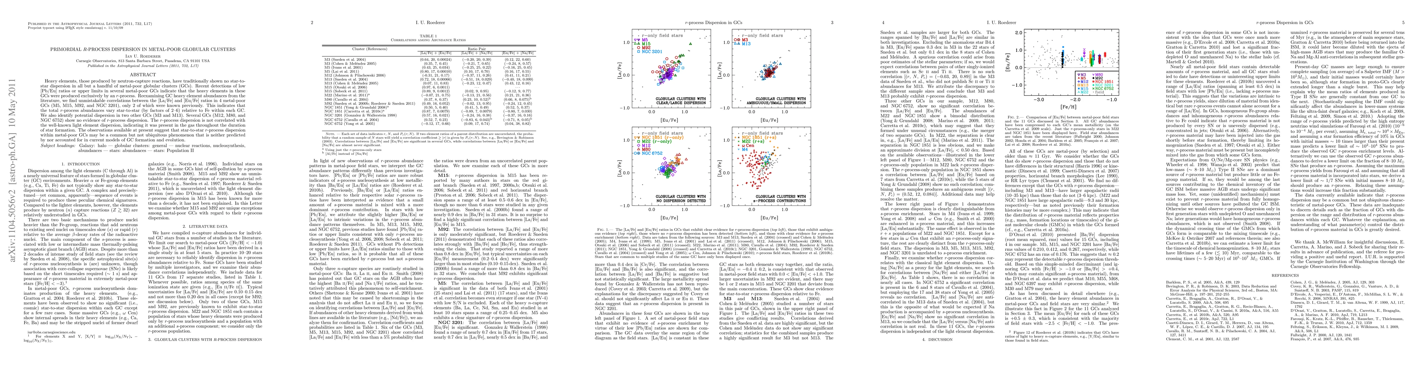 This paper identifies significant star-to-star dispersion in r-process heavy element abundances within several metal-poor globular clusters, challenging existing models of cluster formation. The findings suggest that r-process dispersion is common but not universal among these clusters, and is not linked to light element dispersion.