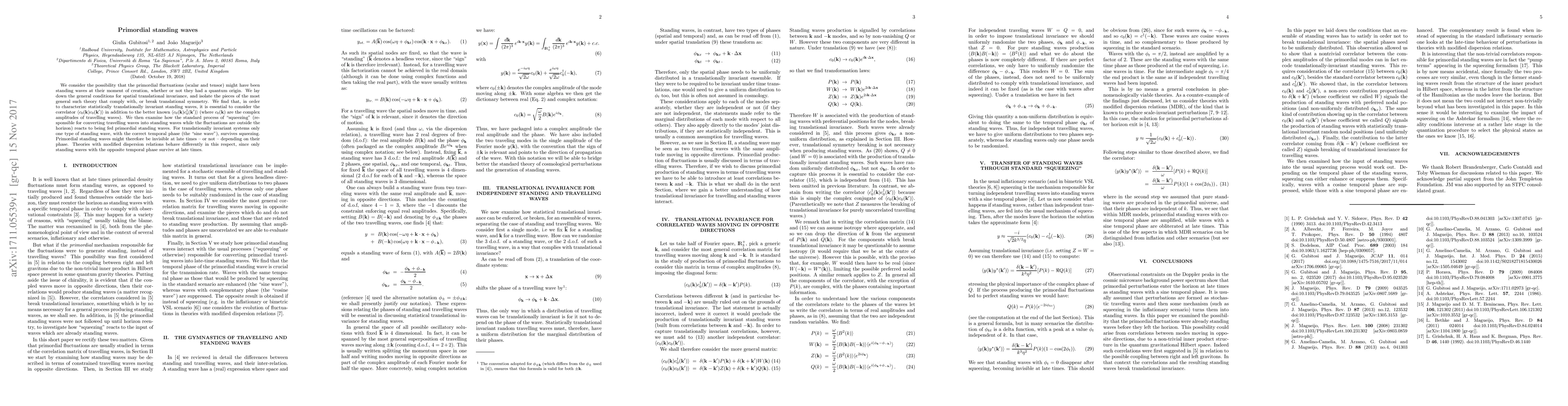 This paper explores the hypothesis that primordial fluctuations could have originated as standing waves, examining the conditions for spatial translational invariance and the statistical implications. It finds that only specific types of standing waves survive the "squeezing" process, potentially rendering them invisible at late times depending on their initial phase.