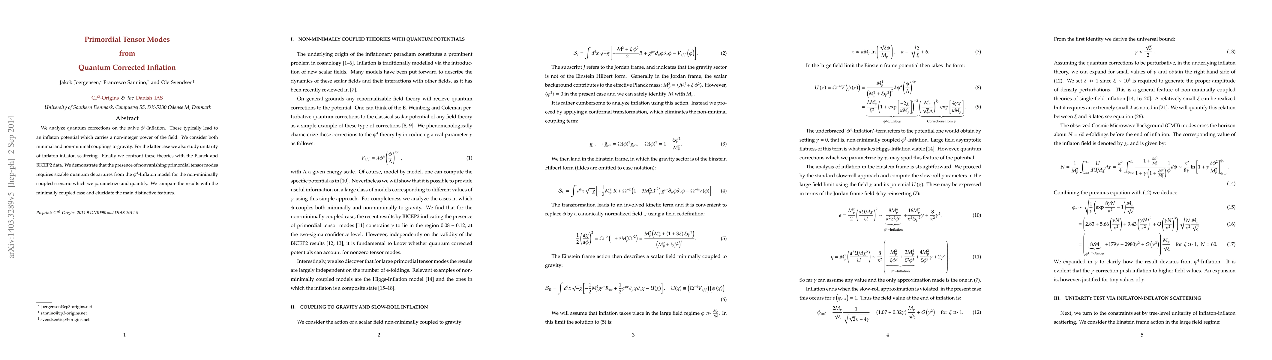 This study explores quantum corrections in inflationary models, showing that primordial tensor modes can only be explained by significant departures from the minimal $ ho^4$-Inflation model, particularly for non-minimal coupling scenarios.