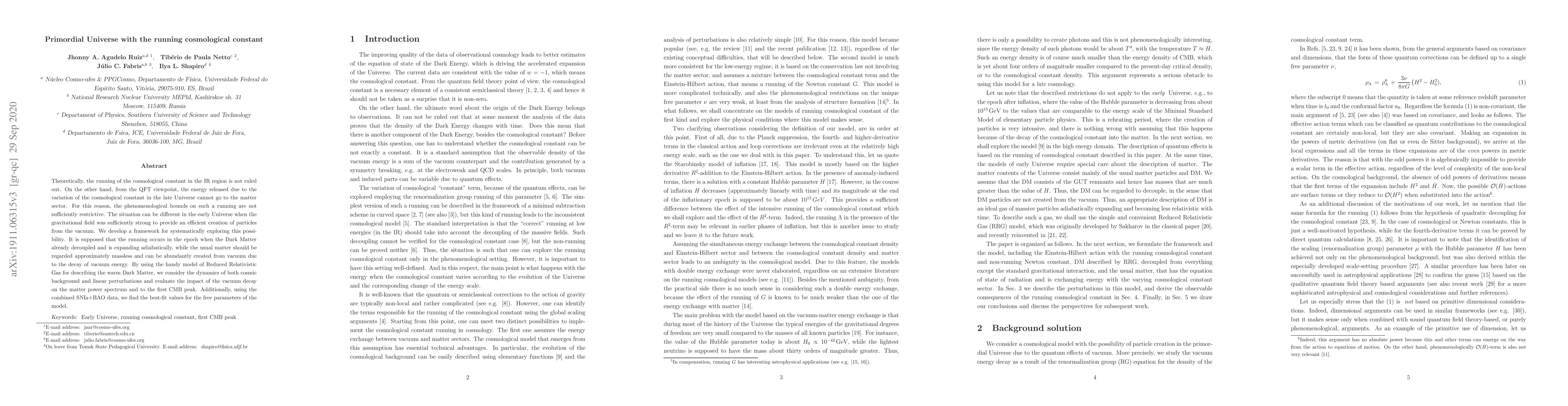 This paper explores the implications of a running cosmological constant in the early universe, proposing a framework to study its effects on particle creation and the dynamics of cosmic background and perturbations. The model evaluates the impact on the matter power spectrum and the first CMB peak, and fits the model parameters using combined CMB+BAO+SNIa data.