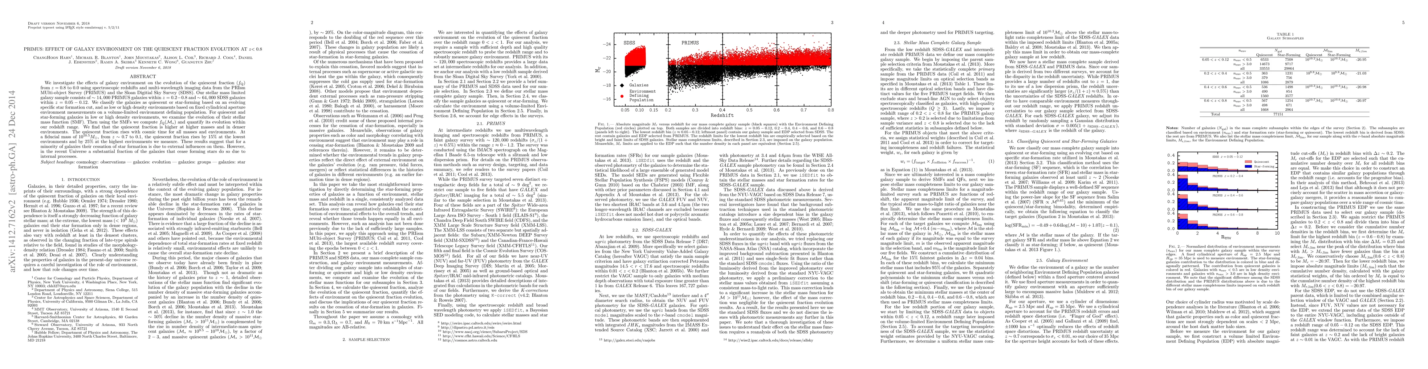 This study examines how galaxy environment influences the evolution of the quiescent fraction ($f_\mathrm{Q}$) from z = 0.8 to 0.0, finding that higher stellar masses and denser environments correlate with a greater quiescent fraction. The quiescent fraction increases over time, with a 15% rise in low-density environments and a 25% rise in high-density environments at a fiducial mass of $10^{10.5}M_\odot$ from z~0.7 to 0.1.