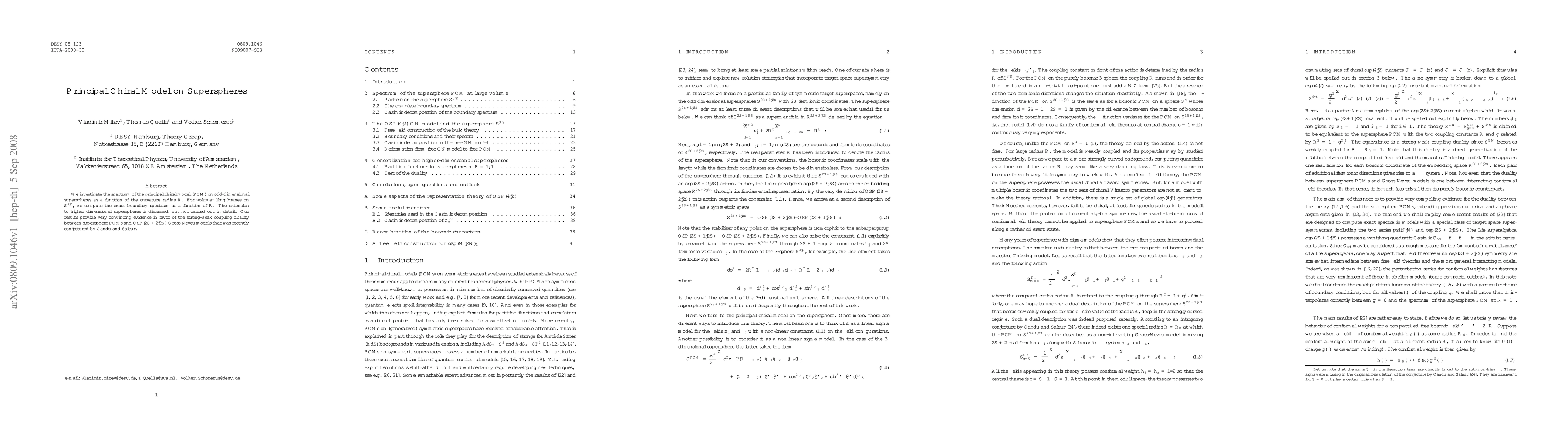 We investigate the spectrum of the principal chiral model (PCM) on odd-dimensional superspheres as a function of the curvature radius R. For volume-filling branes on S^{3|2}, we compute the exact boundary spectrum as a function of R. The extension to higher dimensional superspheres is discussed, but not carried out in detail. Our results provide very convincing evidence in favor of the strong-weak coupling duality between supersphere PCMs and OSP(2S+2|2S) Gross-Neveu models that was recently conjectured by Candu and Saleur in arXiv:0801.0444.