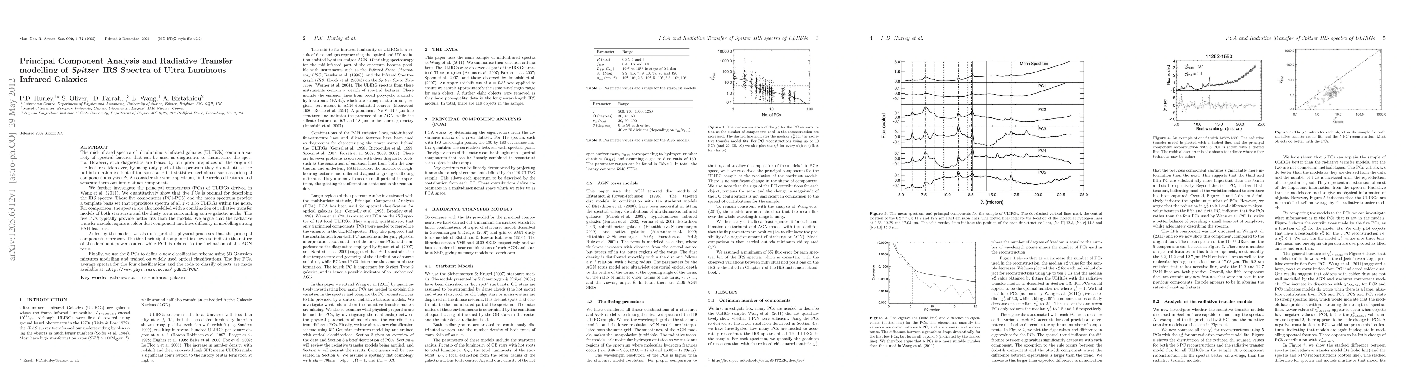 This paper employs principal component analysis (PCA) to analyze Spitzer IRS spectra of ultraluminous infrared galaxies (ULIRGs), finding that five principal components optimally describe the spectral features. These components outperform radiative transfer models in fitting the data, suggesting a need for a colder dust component in the models.