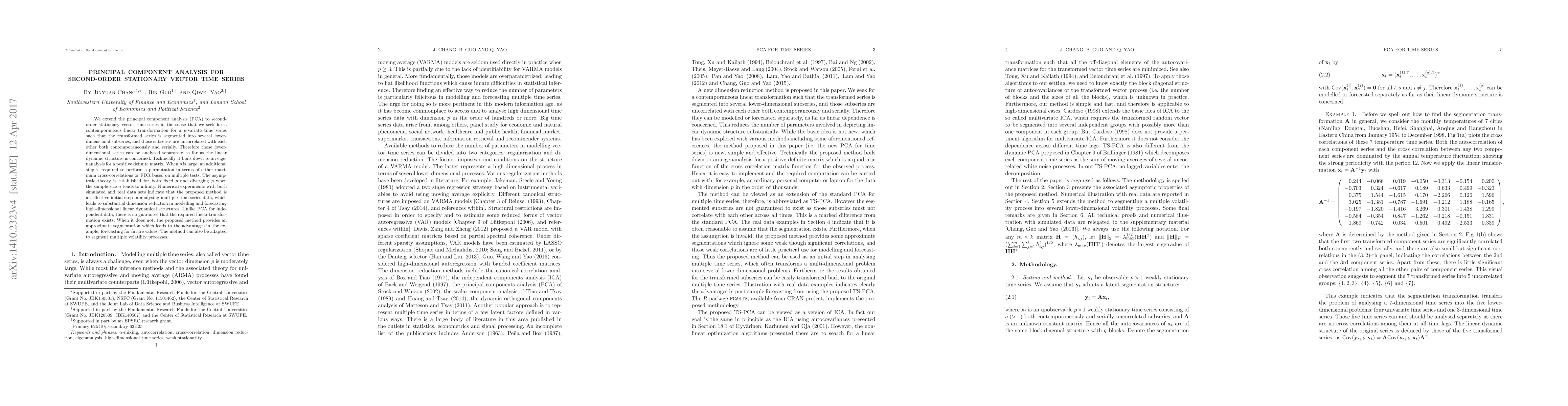 This paper extends PCA to second-order stationary vector time series, proposing a linear transformation to segment the series into uncorrelated lower-dimensional subseries for separate analysis. The method is effective for dimension reduction in high-dimensional linear dynamical structures, though it may only provide an approximate solution when the exact transformation does not exist.