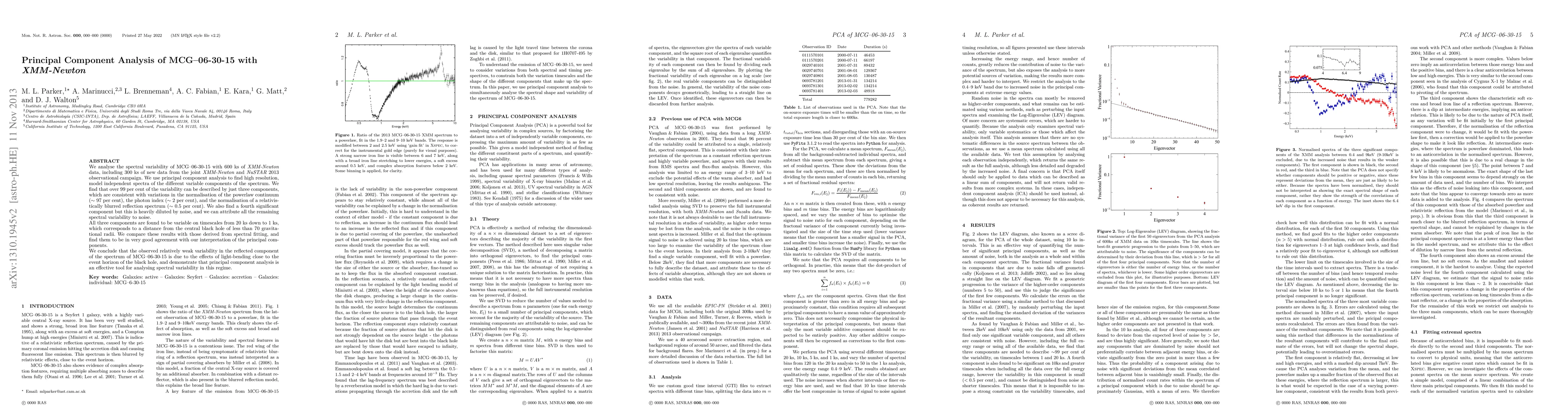 This study uses principal component analysis on XMM-Newton data to analyze the spectral variability of MCG--06-30-15, revealing that 99% of the variability is captured by three main components: variations in the powerlaw continuum, photon index, and relativistically blurred reflection spectrum. The analysis confirms that these components are variable on timescales as short as 1 ks, indicating proximity to the central black hole.