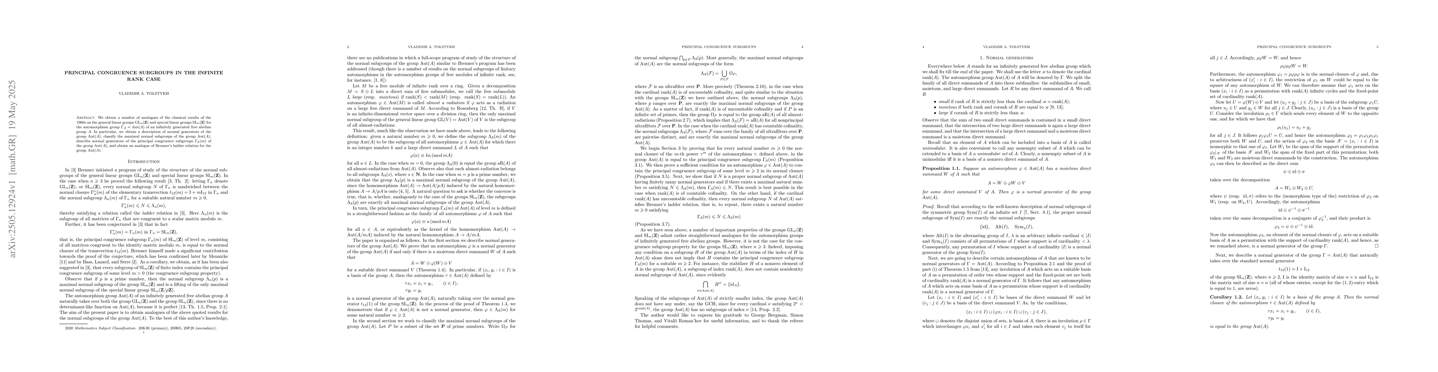 Researchers develop new results about automorphism groups of infinitely generated free abelian groups, including descriptions of normal generators and maximal normal subgroups, with implications for congruence subgroups and Brenner's ladder relation.