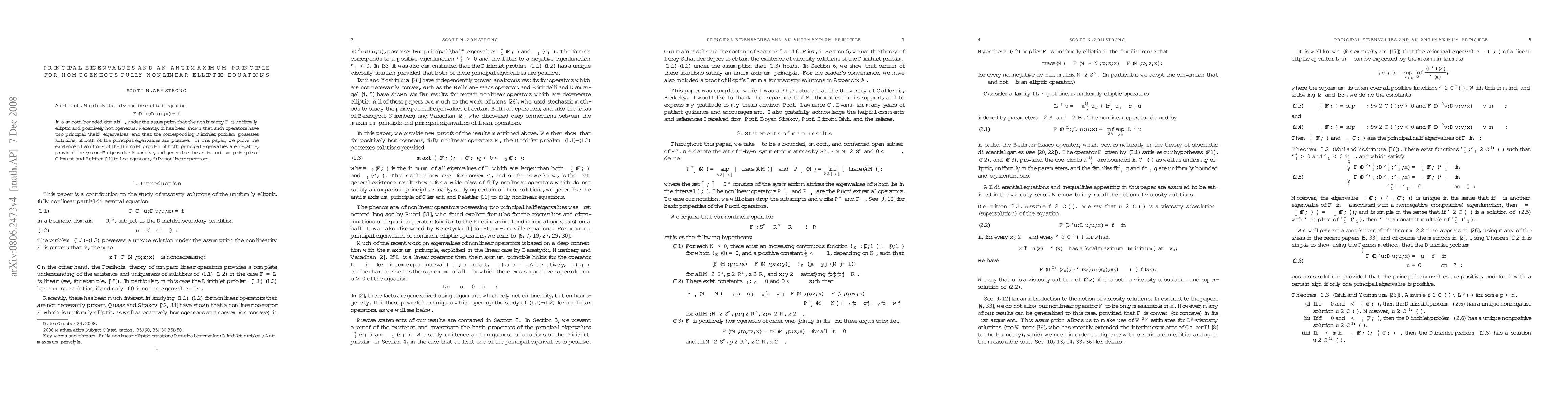 This paper investigates the existence of solutions for the Dirichlet problem of a homogeneous, fully nonlinear elliptic equation, proving that solutions exist when both principal eigenvalues are negative, given that the "second" eigenvalue is positive. It also generalizes the anti-maximum principle for these types of operators.
