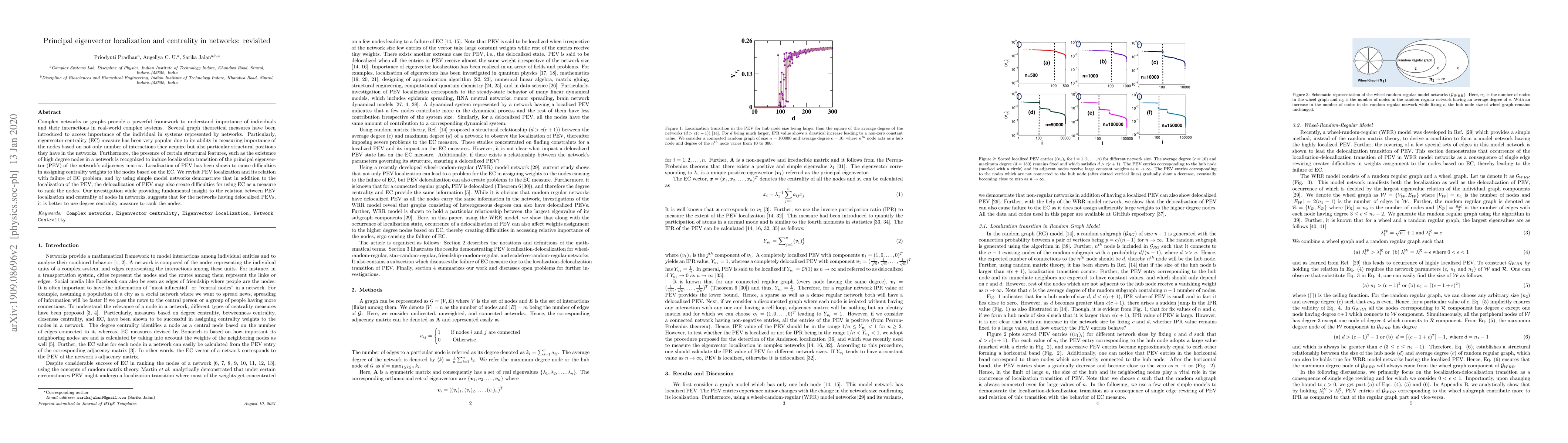 Complex networks or graphs provide a powerful framework to understand importance of individuals and their interactions in real-world complex systems. Several graph theoretical measures have been introduced to access importance of the individual in systems represented by networks. Particularly, eigenvector centrality (EC) measure has been very popular due to its ability in measuring importance of the nodes based on not only number of interactions they acquire but also particular structural positions they have in the networks. Furthermore, the presence of certain structural features, such as the existence of high degree nodes in a network is recognized to induce localization transition of the principal eigenvector (PEV) of the network's adjacency matrix. Localization of PEV has been shown to cause difficulties in assigning centrality weights to the nodes based on the EC. We revisit PEV localization and its relation with failure of EC problem, and by using simple model networks demonstrate that in addition to the localization of the PEV, the delocalization of PEV may also create difficulties for using EC as a measure to rank the nodes. Our investigation while providing fundamental insight to the relation between PEV localization and centrality of nodes in networks, suggests that for the networks having delocalized PEVs, it is better to use degree centrality measure to rank the nodes.