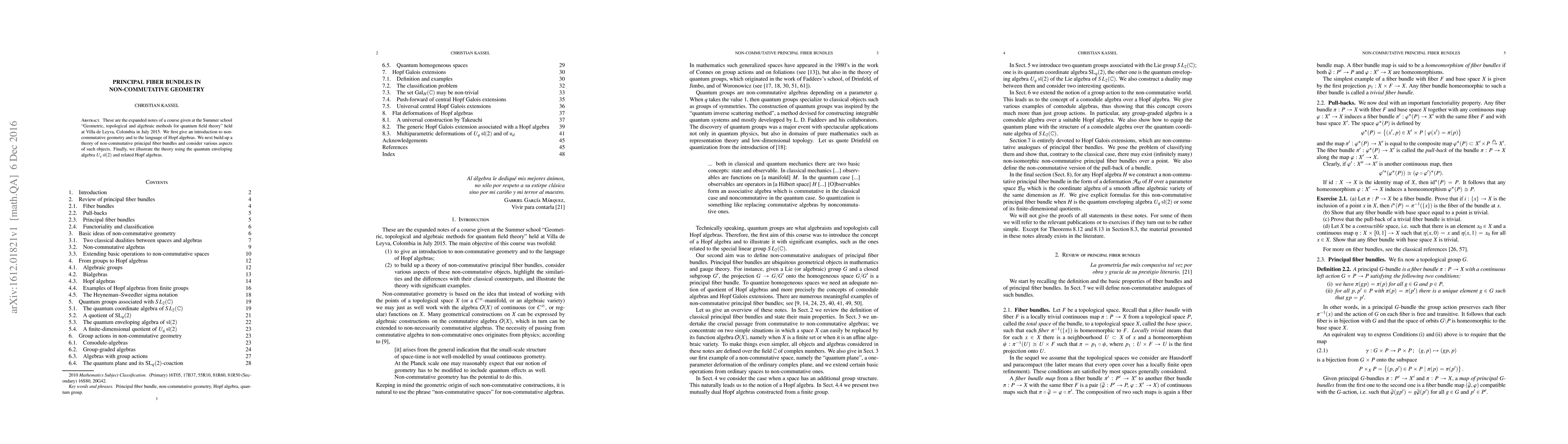 This paper introduces non-commutative geometry and Hopf algebras, develops a theory of non-commutative principal fiber bundles, and demonstrates its application using the quantum enveloping algebra $U_q\mathfrak{sl}(2)$. The material is based on a course given at a 2015 summer school in Colombia.