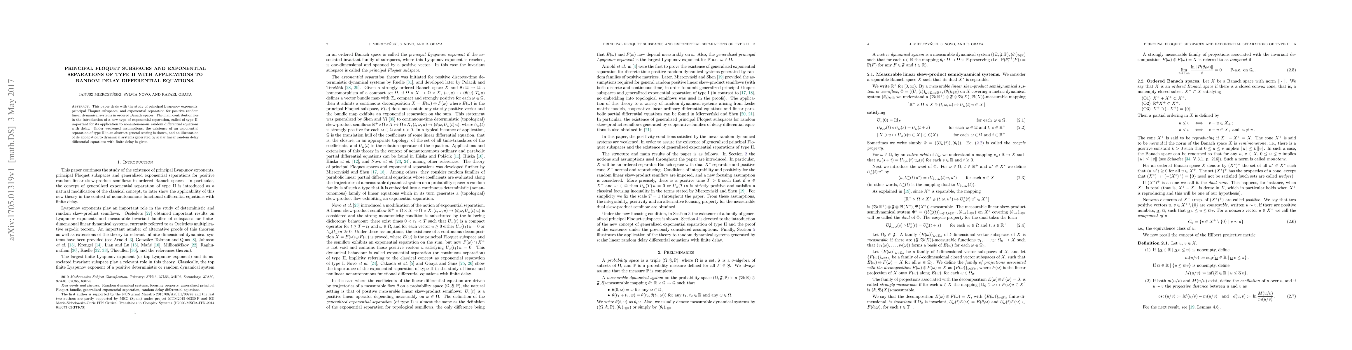 This paper deals with the study of principal Lyapunov exponents, principal Floquet subspaces, and exponential separation for positive random linear dynamical systems in ordered Banach spaces. The main contribution lies in the introduction of a new type of exponential separation, called of type II, important for its application to nonautonomous random differential equations with delay. Under weakened assumptions, the existence of an exponential separation of type II in an abstract general setting is shown, and an illustration of its application to dynamical systems generated by scalar linear random delay differential equations with finite delay is given.