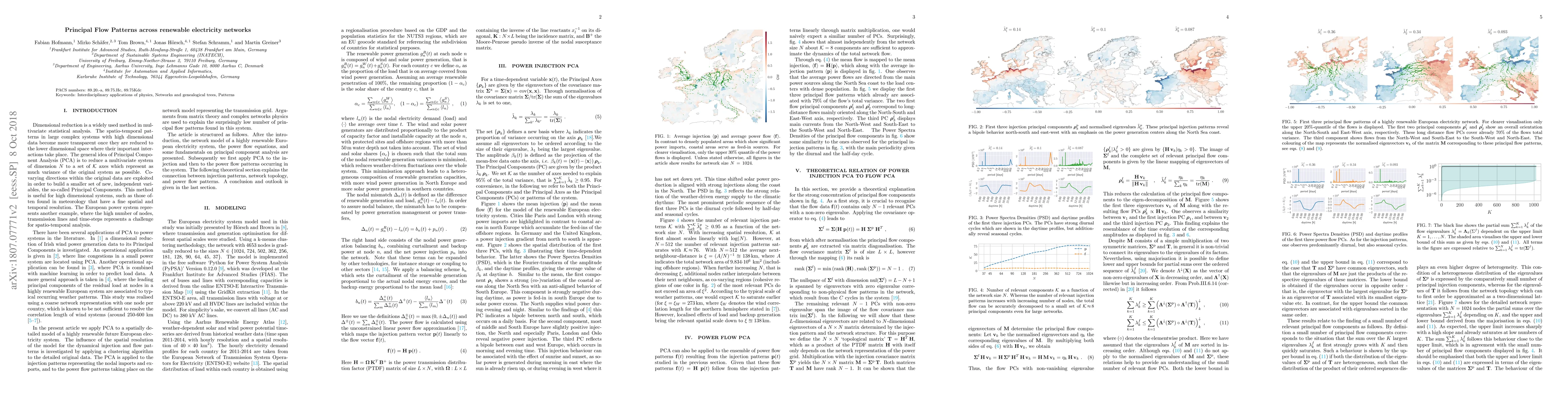 This study uses Principal Component Analysis (PCA) to analyze nodal injection and line flow patterns in a future European renewable electricity network, finding that while more components are needed to describe nodal variance, only 8 principal flow patterns are sufficient to capture 95% of line flow variance, due to alignment with the network's topology.