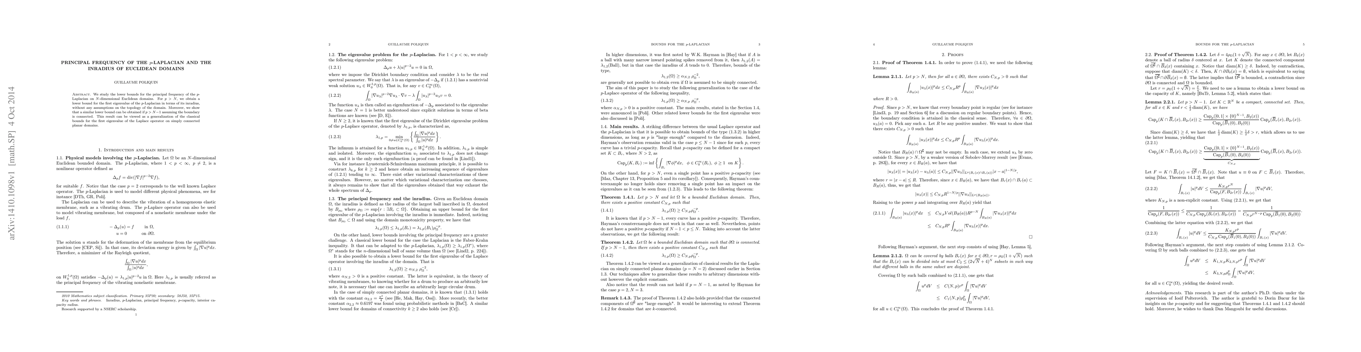 This paper establishes lower bounds for the principal frequency of the $p$-Laplacian on $N$-dimensional Euclidean domains, showing that for $p>N$, the first eigenvalue is bounded below by a function of the inradius. It also generalizes these bounds to $p > N-1$ under the assumption of a connected boundary.