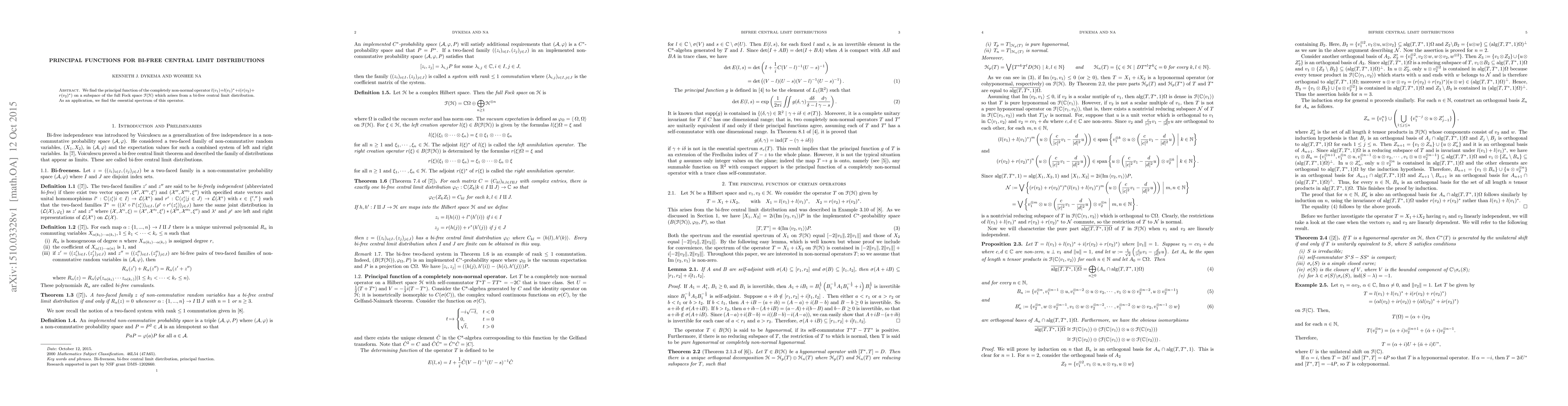 We find the principal function of the completely non-normal operator l(v_1)+l(v_1)^*+i(r(v_2)+r(v_2)^*) on a subspace of the full Fock space F(H) which arises from a bi-free central limit distribution. As an application, we find the essential spectrum of this operator.