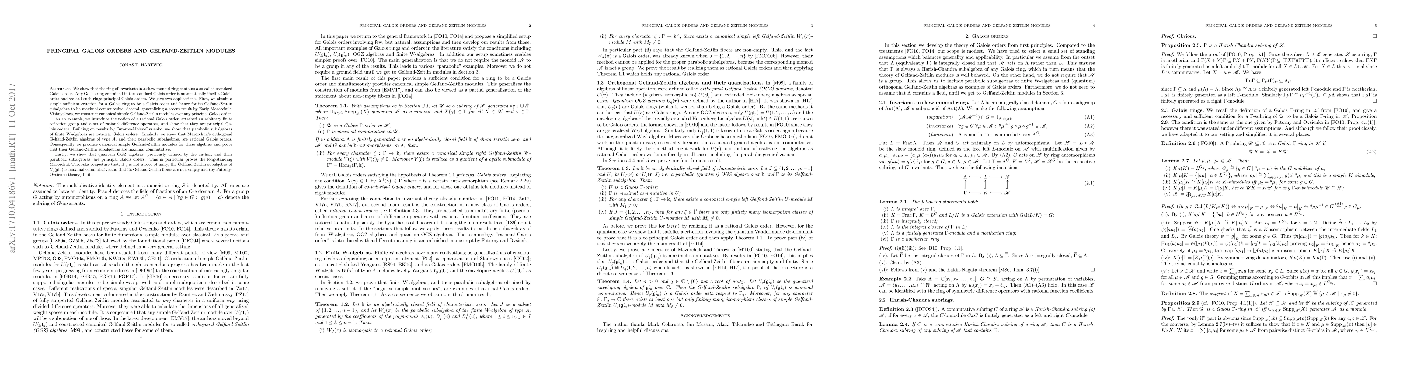 We show that the ring of invariants in a skew monoid ring contains a so called standard Galois order. Any Galois ring contained in the standard Galois order is automatically itself a Galois order and we call such rings principal Galois orders. We give two applications. First, we obtain a simple sufficient criterion for a Galois ring to be a Galois order and hence for its Gelfand-Zeitlin subalgebra to be maximal commutative. Second, generalizing a recent result by Early-Mazorchuk-Vishnyakova, we construct canonical simple Gelfand-Zeitlin modules over any principal Galois order. As an example, we introduce the notion of a rational Galois order, attached an arbitrary finite reflection group and a set of rational difference operators, and show that they are principal Galois orders. Building on results by Futorny-Molev-Ovsienko, we show that parabolic subalgebras of finite W-algebras are rational Galois orders. Similarly we show that Mazorchuk's orthogonal Gelfand-Zeitlin algebras of type $A$, and their parabolic subalgebras, are rational Galois orders. Consequently we produce canonical simple Gelfand-Zeitlin modules for these algebras and prove that their Gelfand-Zeitlin subalgebras are maximal commutative. Lastly, we show that quantum OGZ algebras, previously defined by the author, and their parabolic subalgebras, are principal Galois orders. This in particular proves the long-standing Mazorchuk-Turowska conjecture that, if $q$ is not a root of unity, the Gelfand-Zeitlin subalgebra of $U_q(\mathfrak{gl}_n)$ is maximal commutative and that its Gelfand-Zeitlin fibers are non-empty and (by Futorny-Ovsienko theory) finite.