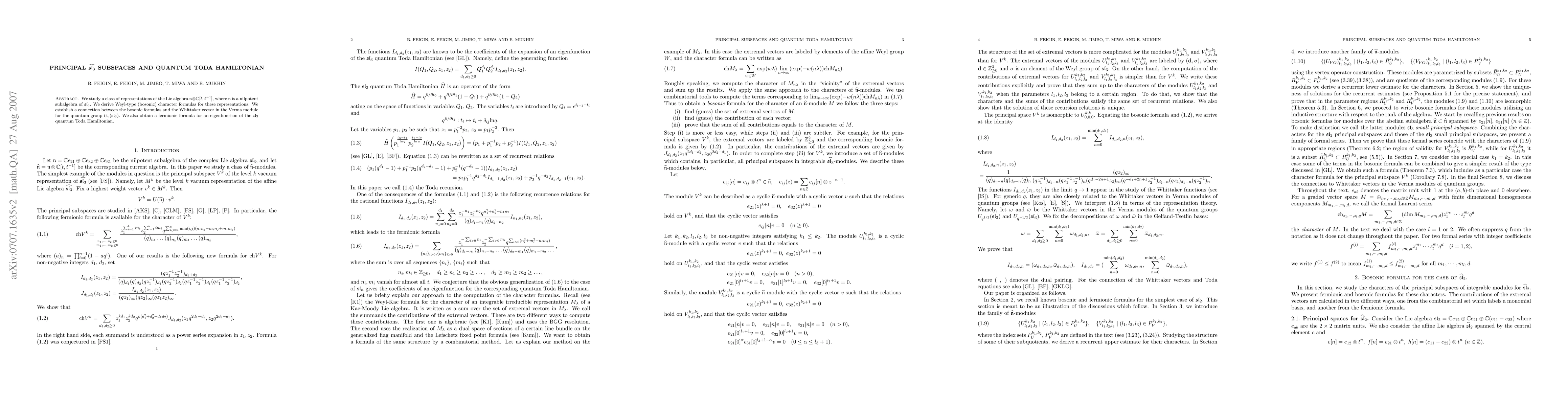 We study a class of representations of the Lie algebra of Laurent polynomials with values in the nilpotent subalgebra of sl(3). We derive Weyl-type (bosonic) character formulas for these representations. We establish a connection between the bosonic formulas and the Whittaker vector in the Verma module for the quantum group $U_v sl(3)$. We also obtain a fermionic formula for an eigenfunction of the sl(3) quantum Toda Hamiltonian.