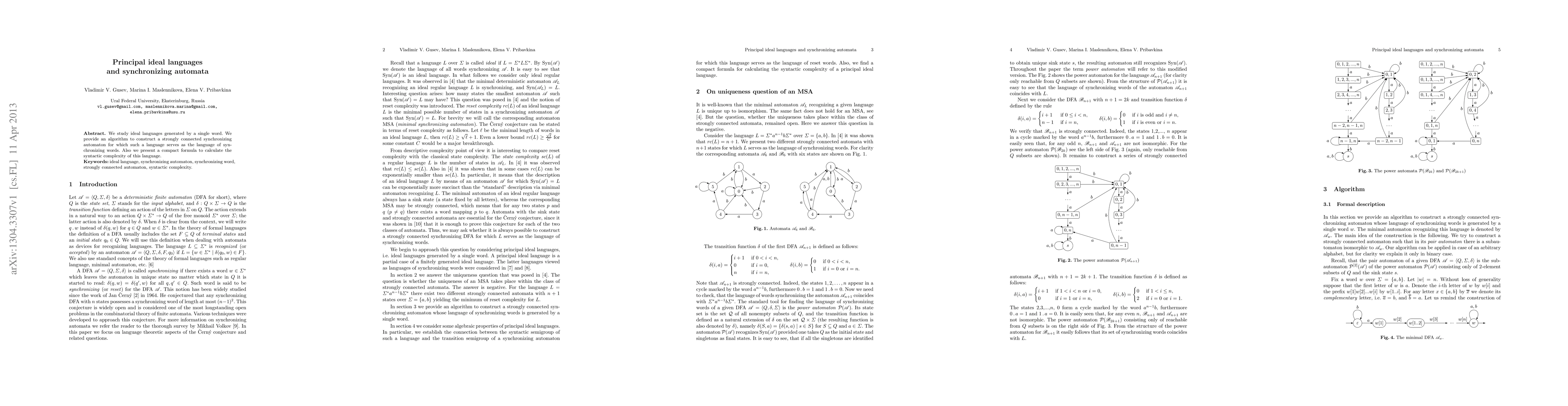 This paper investigates ideal languages formed by a single word, presenting an algorithm to build a strongly connected synchronizing automaton for these languages and a formula to determine their syntactic complexity.