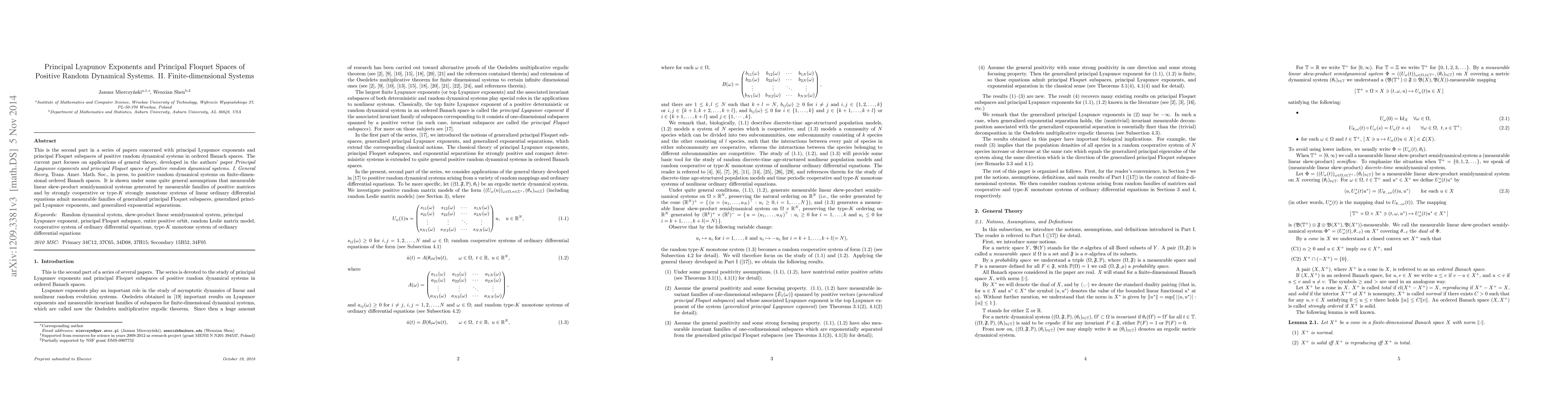 This paper applies the general theory of principal Lyapunov exponents and Floquet spaces to finite-dimensional positive random dynamical systems in ordered Banach spaces, demonstrating the existence of measurable generalized principal Floquet subspaces and exponents under general assumptions.