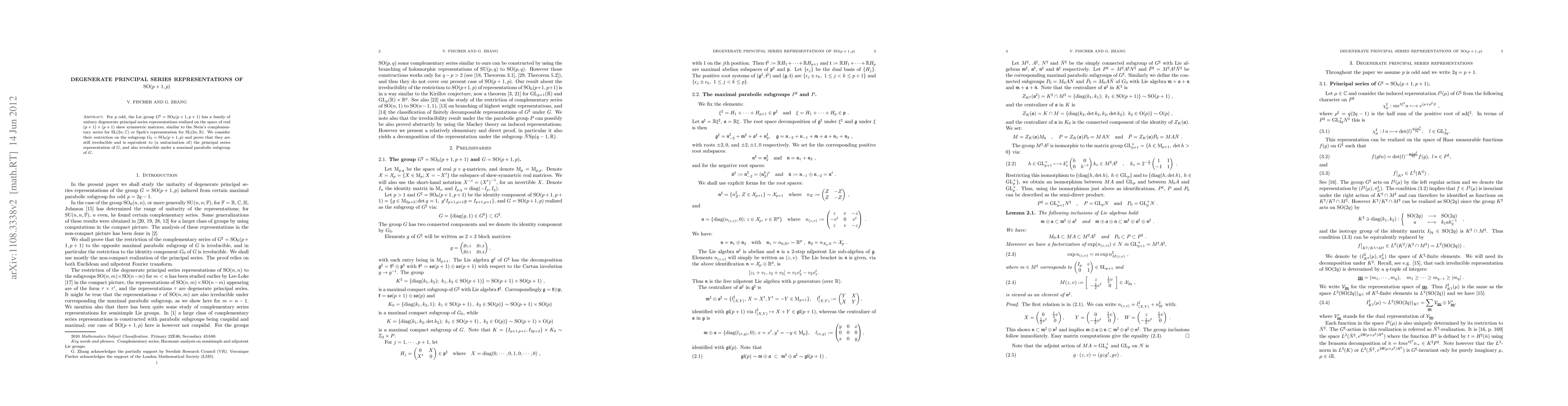 For p odd, the Lie group SO_0(p+1,p+1) has a family of unitary degenerate principal series representations realized on the space of real (p+1) by (p+1) skew symmetric matrices, similar to the Stein's complementary series for SL(2n,C) or Speh's representation for SL(2n,R). We consider their restriction on the subgroup G= SO(p+1,p) and prove that they are still irreducible and is equivalent to (a unitarization of) the principal series representation of G, and also irreducible under a maximal parabolic subgroup of G.