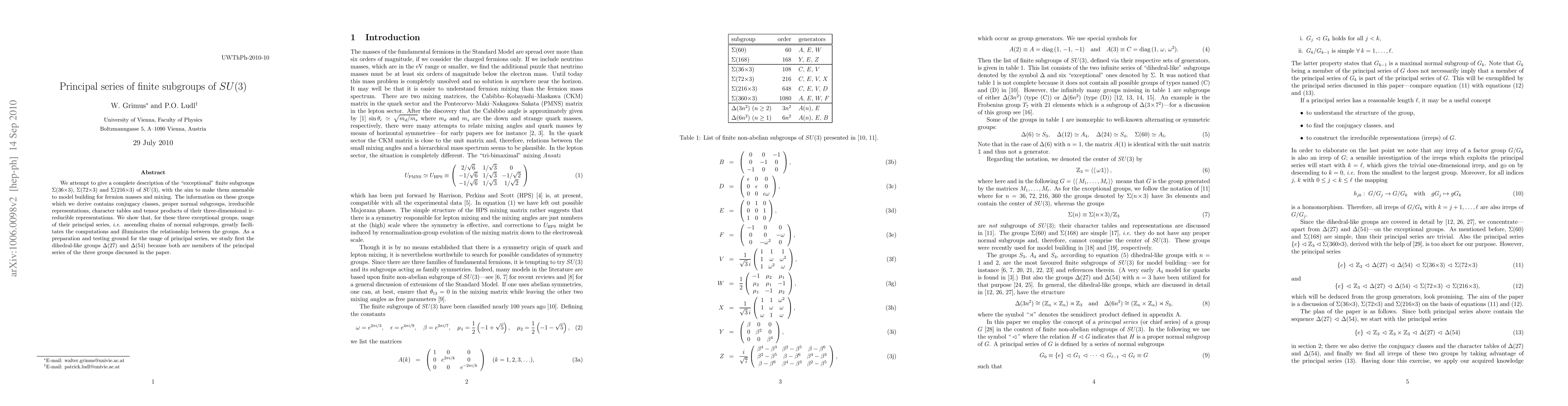 We attempt to give a complete description of the "exceptional" finite subgroups Sigma(36x3), Sigma(72x3) and Sigma(216x3) of SU(3), with the aim to make them amenable to model building for fermion masses and mixing. The information on these groups which we derive contains conjugacy classes, proper normal subgroups, irreducible representations, character tables and tensor products of their three-dimensional irreducible representations. We show that, for these three exceptional groups, usage of their principal series, i.e. ascending chains of normal subgroups, greatly facilitates the computations and illuminates the relationship between the groups. As a preparation and testing ground for the usage of principal series, we study first the dihedral-like groups Delta(27) and Delta(54) because both are members of the principal series of the three groups discussed in the paper.