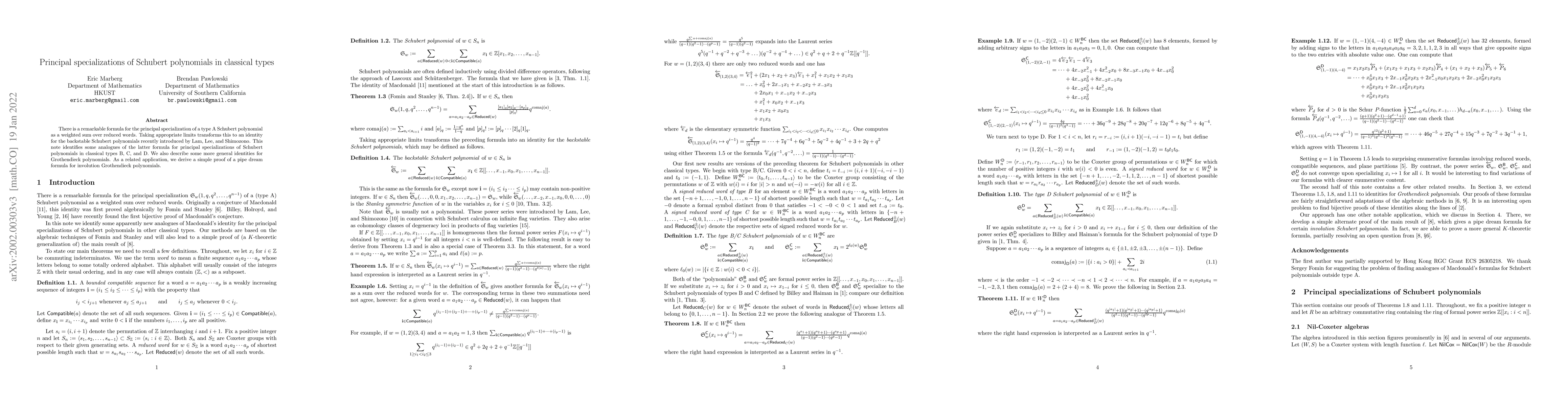There is a remarkable formula for the principal specialization of a type A Schubert polynomial as a weighted sum over reduced words. Taking appropriate limits transforms this to an identity for the backstable Schubert polynomials recently introduced by Lam, Lee, and Shimozono. This note identifies some analogues of the latter formula for principal specializations of Schubert polynomials in classical types B, C, and D. We also describe some more general identities for Grothendieck polynomials. As a related application, we derive a simple proof of a pipe dream formula for involution Grothendieck polynomials.