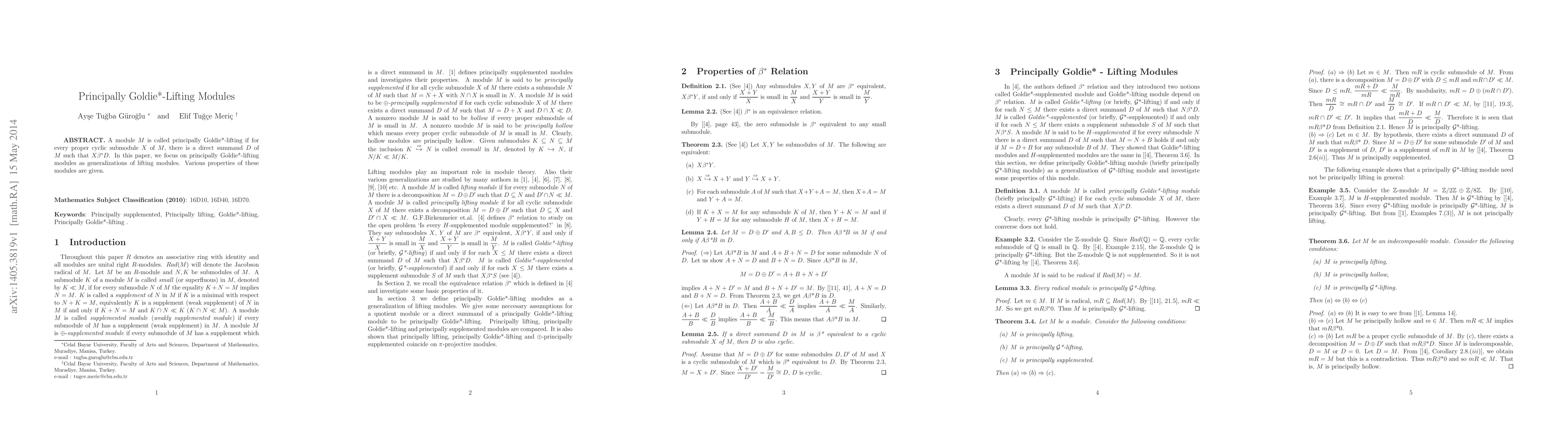 This paper explores principally Goldie*-lifting modules, a generalization of lifting modules, where every proper cyclic submodule has a direct summand that lifts it. The paper discusses various properties of these modules.