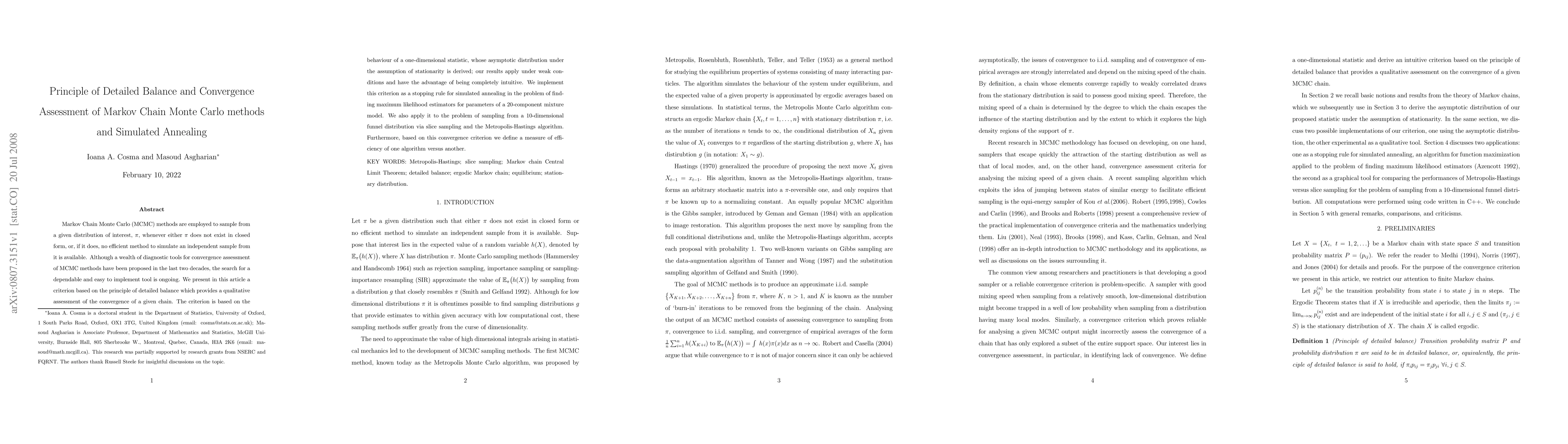 This paper introduces a criterion based on detailed balance for assessing convergence of Markov Chain Monte Carlo methods, providing an easy-to-implement tool for diagnosing convergence in complex distributions.