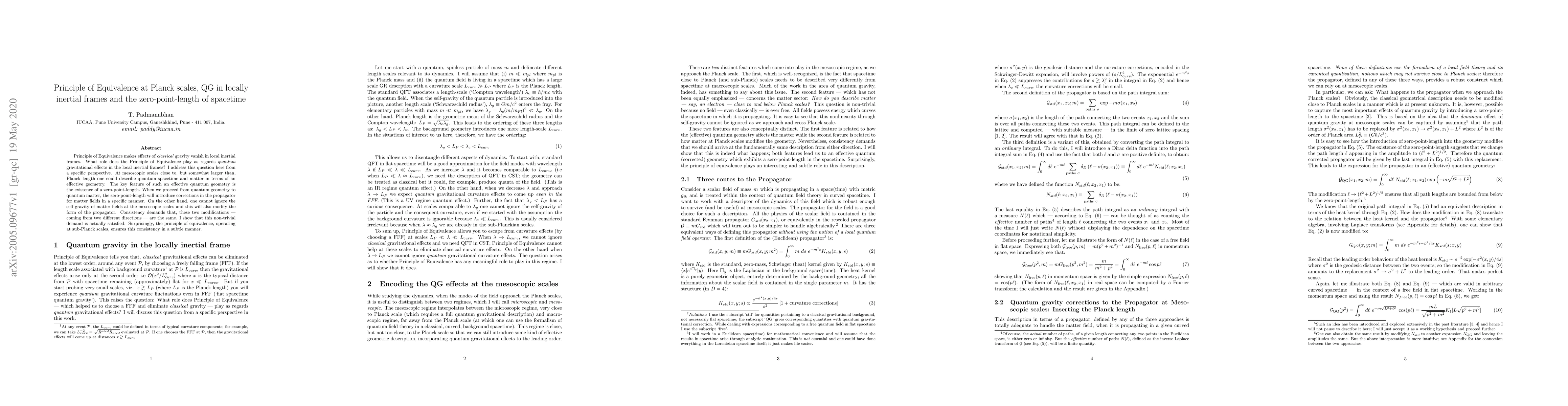 Principle of Equivalence makes effects of classical gravity vanish in local inertial frames. What role does the Principle of Equivalence play as regards quantum gravitational effects in the local inertial frames? I address this question here from a specific perspective. At mesoscopic scales close to, but somewhat larger than, Planck length one could describe quantum spacetime and matter in terms of an effective geometry. The key feature of such an effective quantum geometry is the existence of a zero-point-length. When we proceed from quantum geometry to quantum matter, the zero-point-length will introduce corrections in the propagator for matter fields in a specific manner. On the other hand, one cannot ignore the self-gravity of matter fields at the mesoscopic scales and this will also modify the form of the propagator. Consistency demands that, these two modifications - coming from two different directions - are the same. I show that this non-trivial demand is actually satisfied. Surprisingly, the Principle of Equivalence, operating at sub-Planck scales, ensures this consistency in a subtle manner.