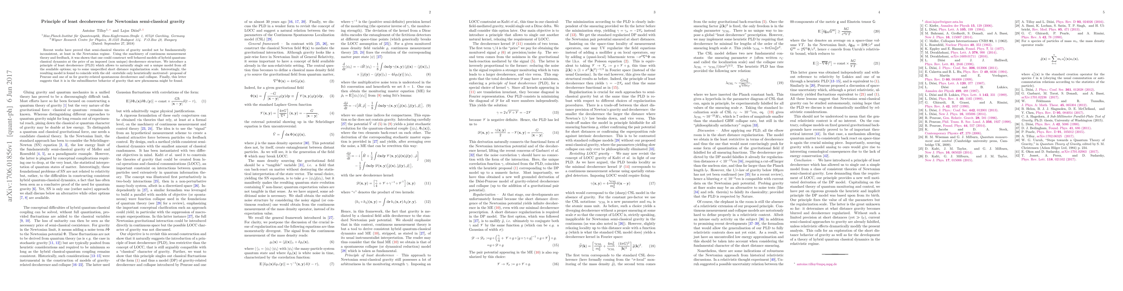 Recent works have proved that semi-classical theories of gravity needed not be fundamentally inconsistent, at least in the Newtonian regime. Using the machinery of continuous measurement theory and feedback, it was shown that one could construct well behaved models of hybrid quantum-classical dynamics at the price of an imposed (non unique) decoherence structure. We introduce a principle of least decoherence (PLD) which allows to naturally single out a unique model from all the available options; up to some unspecified short distance regularization scale. Interestingly, the resulting model is found to coincide with the old --erstwhile only heuristically motivated-- proposal of Penrose and one of us for gravity-related spontaneous decoherence and collapse. Finally, this letter suggests that it is in the submillimeter behavior of gravity that new phenomena might be found.