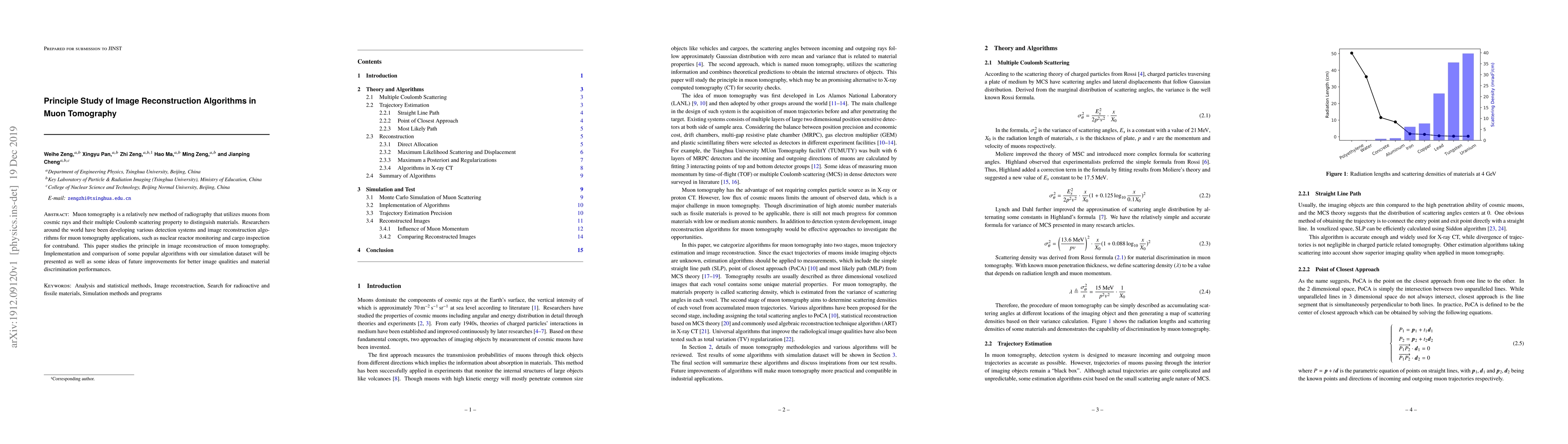 This paper investigates the principles and implementation of image reconstruction algorithms for muon tomography, comparing popular methods and proposing future enhancements for improved material discrimination and image quality. The study aims to advance applications like nuclear reactor monitoring and cargo inspection.