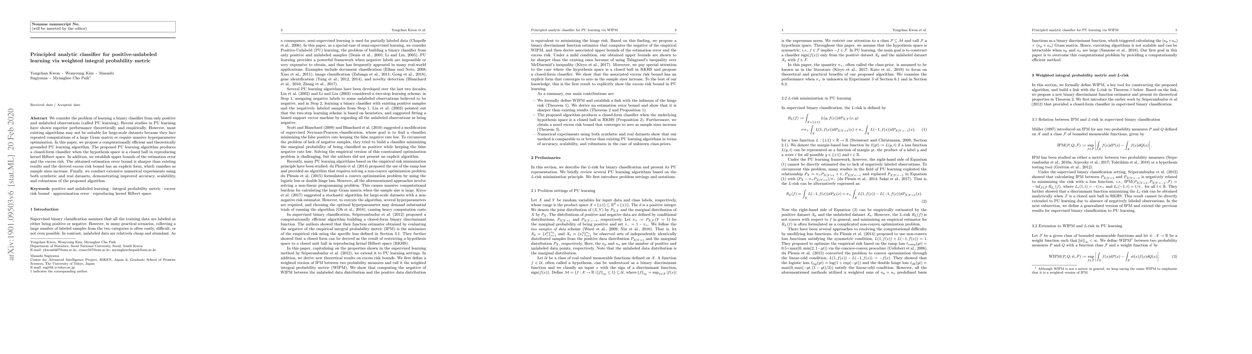 This paper proposes a computationally efficient principled analytic classifier for positive-unlabeled learning, offering a closed-form solution in reproducing kernel Hilbert space with sharp error bounds and scalability for large datasets. The method demonstrates superior performance in accuracy, scalability, and robustness through extensive experiments.