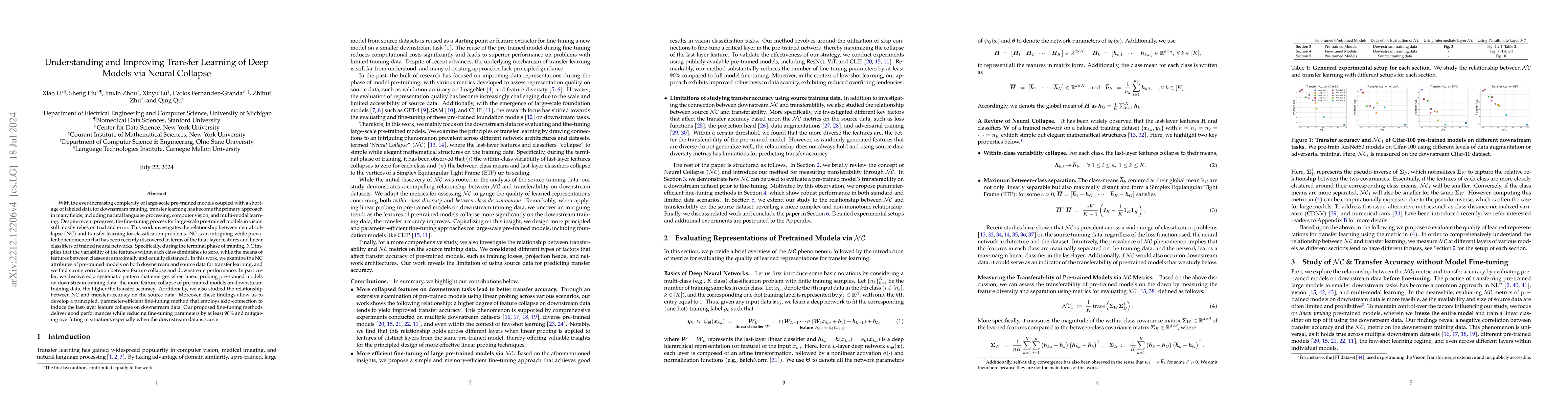 This paper investigates neural collapse in transfer learning, finding that preserving within-class variability during pre-training and enhancing it during fine-tuning improves model transferability and test accuracy. The proposed fine-tuning methods achieve better or comparable performance while reducing fine-tuning parameters by at least 70% and mitigating overfitting.