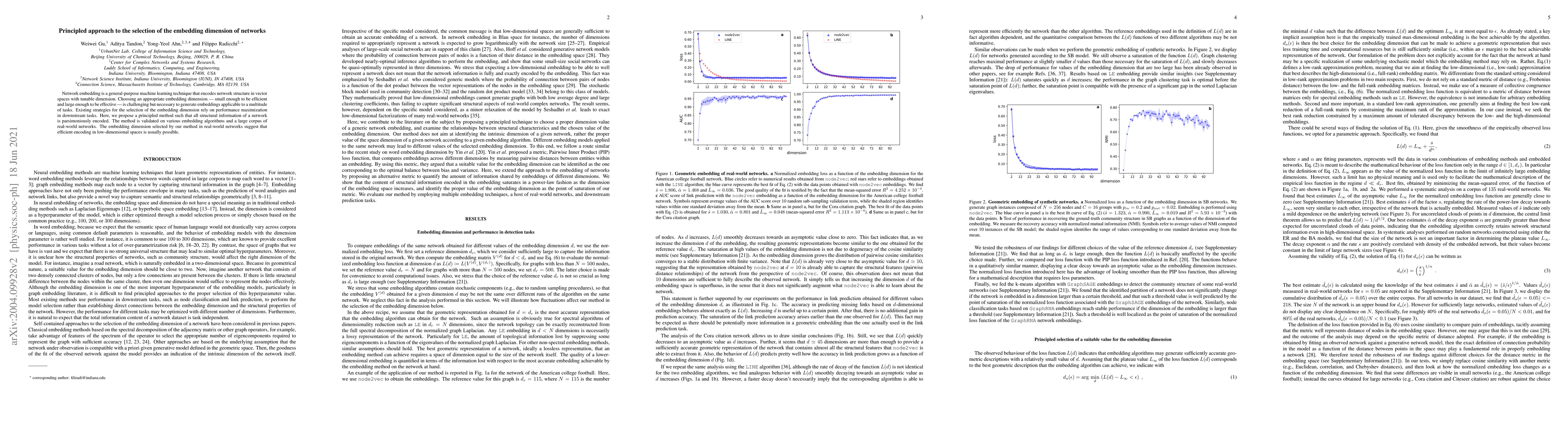 This paper proposes a principled method for selecting the optimal embedding dimension for network embedding, ensuring that all structural information is efficiently encoded without overfitting. The method is validated on various algorithms and real-world networks, demonstrating that low-dimensional spaces can often suffice for effective encoding.