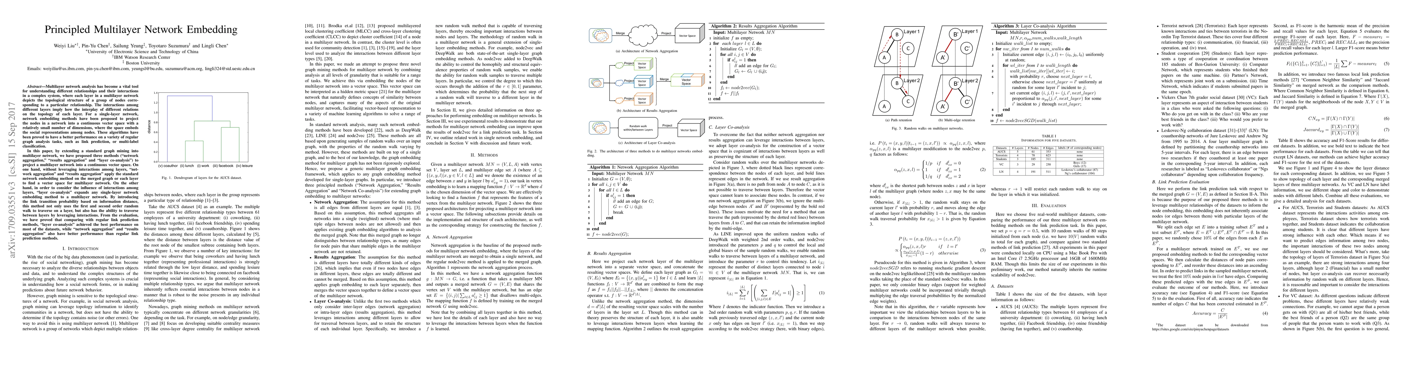 This paper proposes three methods for embedding multilayer networks into a continuous vector space, enhancing the analysis of complex systems with multiple relationships. The "layer co-analysis" method achieved superior performance in link prediction tasks compared to traditional methods, demonstrating the effectiveness of integrating interactions across network layers.