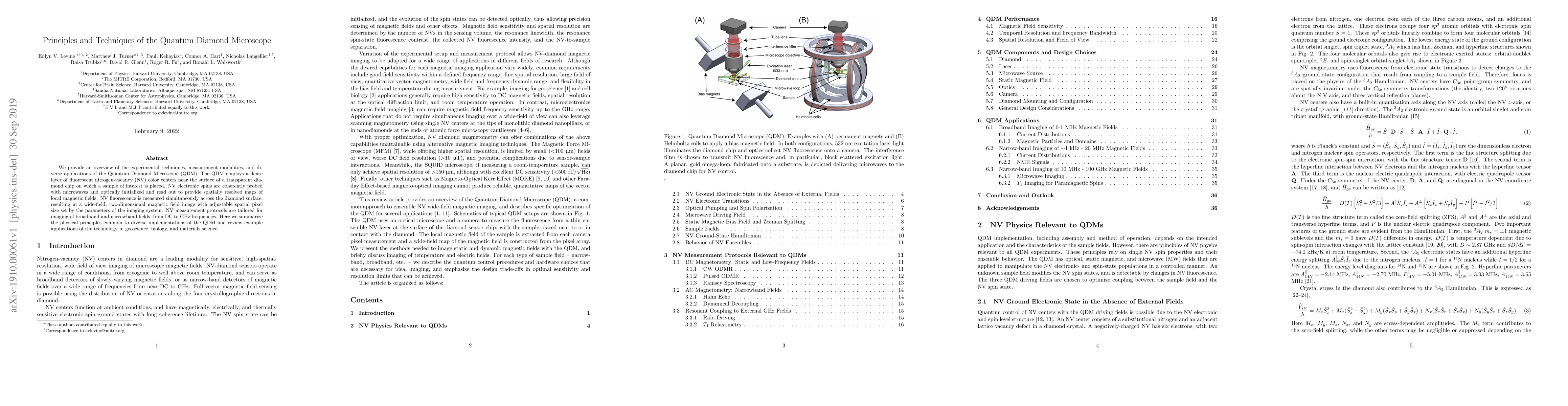 The Quantum Diamond Microscope (QDM) uses NV color centers to create spatially resolved maps of local magnetic fields with high precision. It has applications in geoscience, biology, and materials science.