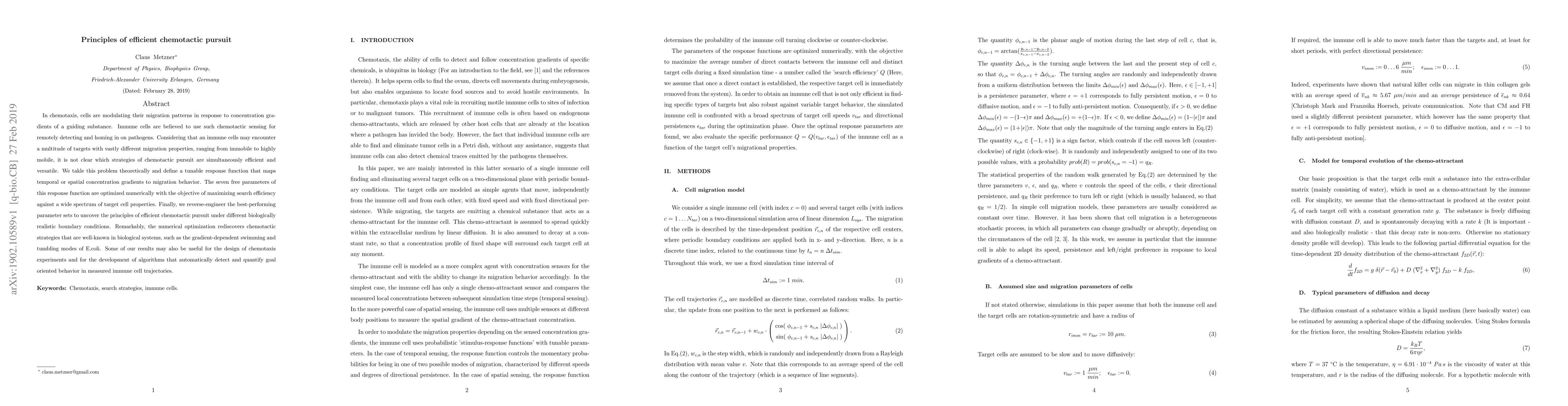 This paper theoretically investigates efficient chemotactic pursuit strategies for immune cells navigating concentration gradients of guiding substances. It optimizes a tunable response function to maximize search efficiency across diverse target properties, revealing principles akin to known biological chemotactic behaviors, and suggesting applications for experiment design and algorithmic analysis of immune cell trajectories.